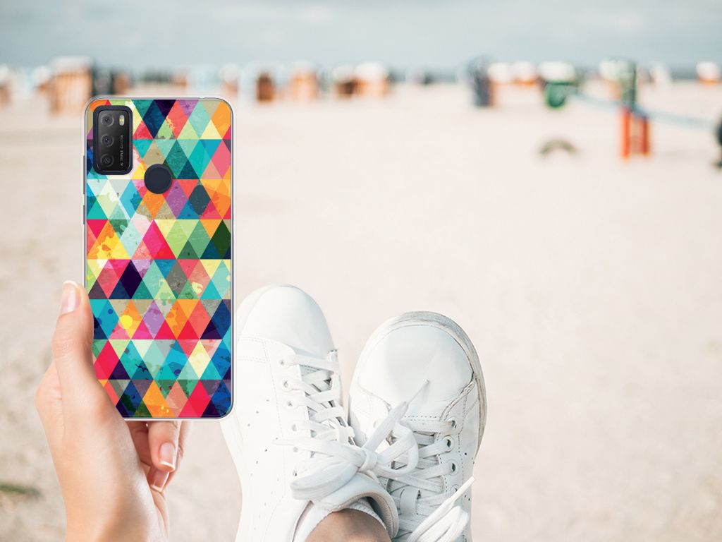 Van dit geruite design hoesje moet je een beetje houden. Maar als je het eenmaal in bezit hebt, ben je waarschijnlijk binnen no time verkocht. Het design heeft ruitjes in alle kleuren van de regenboog en door de grijze achtergrond kan het hoesje enigszins druk overkomen. Maar tegelijkertijd is dit de kracht van het hoesje. Met dit design hoesje Geruit zal je namelijk heel erg opvallen. Dit is voor veel vooral jonge smartphone gebruikers een belangrijk voordeel. Deze geruite print staat op een Alcatel 1S (2021) TPU bumper. Dit zeer flexibele smartphone hoesje heeft alle nodige uitsparingen en past altijd in je broekzak. De case is aan de bovenkant bedrukt, de randen blijven transparant.