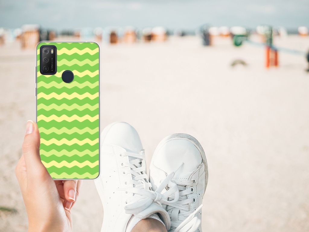 Dit groene design hoesje met groene golven is speciaal ontworpen voor jouw telefoon. We hebben een vleugje geel toegevoegd, zodat er sprake is van variatie. Dit Waves Green hoesje ziet er flitsend uit. Dat kan ook niet anders, als je weet dat we veel energie steken in het bedenken van originele designs. Een heel strak Alcatel 1S (2021) TPU bumper, met zeer veel opties. Past dit groene design hoesje met golven goed bij jou? Bestel het dan vandaag nog, tegen zeer lage kosten. Het design staat op een TPU case. Dit hoesje wordt alleen aan de bovenkant bedrukt en is zeer flexibel. De randen van het hoesje met groene golven blijven transparant en worden niet bedrukt. Met dit hoesje past jouw telefoon altijd in je broekzak.