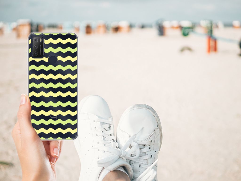 Dit Waves Yellow design hoesje met licht groene en gele golven is speciaal ontworpen voor jouw telefoon. We hebben een vleugje lichtgeel toegevoegd, zodat de case er een beetje spannender en leuker uitziet. Dit licht groene hoesje met licht groene golven ziet er oogstrelend uit. Het wordt in ons eigen magazijn bedrukt, in zeer goede kwaliteit inkt. Wij kunnen dus een zeer duurzaam hoesje met licht groene golven garanderen. Dit hele mooie Alcatel 1S (2021) TPU bumper heeft vele extra’s. Is dit licht groene design hoesje je op het lijf geschreven? Grijp dan nu je kans. Deze TPU case met lichtgroene golven wordt alleen aan de bovenkant bedrukt en is zeer flexibel. De randen van het hoesje met licht groene golven blijven transparant en worden niet bedrukt. Met dit hoesje past jouw telefoon altijd in je broekzak.