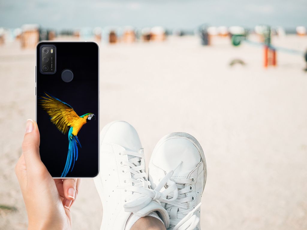 Dit design hoesje met Papegaai tegen een zwarte achtergrond is een zeer flexibele bescherming voor jouw smartphone. Dit komt vooral omdat deze print op een tpu case staat. Dit is een zeer buigzaam hoesje, dat de telefoon vooral aan de achterkant en zijkanten beschermt. De bovenkant van de Alcatel 1S (2021) TPU Hoesje wordt bedrukt met deze schitterende print. De zijkanten blijven doorzichtig. Papegaaien zijn erg sociale vogels die voldoende aandacht en gezelschap nodig hebben. Als je er voor kiest om een papegaai aan te schaffen, is het een goed idee om een koppeltje te nemen. Koop je meerdere tpu cases met een papegaai, dan ga je automatisch minder betalen per hoesje. Wij hanteren een systeem van bundelkorting. Dus koop dit hoesje met opstaande randen voor een spotprijs.