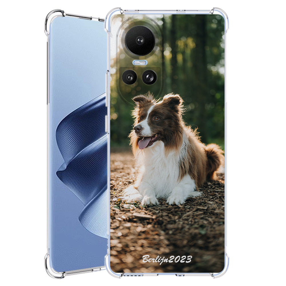 Anti-Shock Back Cover Hoesje Maken voor de OPPO Reno10. Ben je op zoek naar een originele en unieke bescherming voor je telefoon? Dan ben je bij B2C Telecom aan het juiste adres! Je kunt via onze website gemakkelijk een telefoonhoesje ontwerpen met foto's, tekst of bedrijfslogo. De mogelijkheden zijn eindeloos. Wees creatief en upload foto's of plaatjes van je kinderen, huisdieren, familie, hobby of favoriete voetbalclub. De foto's of plaatjes kun je in de gewenste grootte plaatsen of draaien voor een speels effect. Maak het hoesje persoonlijker door je naam of quote toe te voegen. Je kunt kiezen uit verschillende lettertypes; van strak tot vetgedrukt of ga je liever voor iets sierlijks? Het kan allemaal! De kers op de taart is natuurlijk de toevoeging van een glossy-effect! Kies uit verschillende effecten en jouw hoesje wordt subtiel bedrukt met een glossy-effect. Kortom, wij bieden verschillende mogelijkheden om jouw hoesje zo persoonlijk en uniek mogelijk te maken! Jouw ontwerp wordt bedrukt op TPU hoesje. Enkel de voorzijde van het hoesje worden bedrukt. De randen blijven transparant. Overtuigd? Ontwerp dan vandaag nog je eigen telefoonhoesje en ontvang jouw ontwerp binnen een aantal werkdagen in huis!