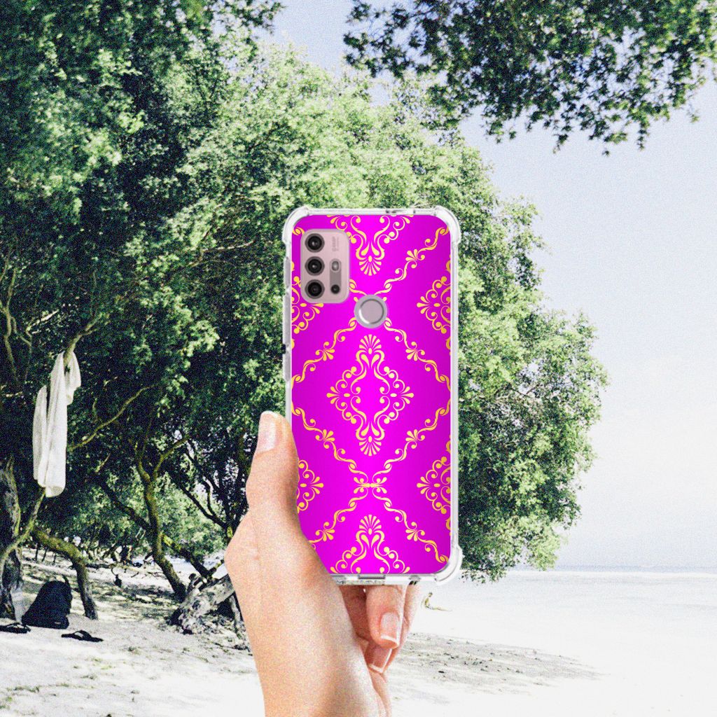 Ben je op zoek naar een uniek telefoonhoesje voor je Motorola Moto G30 | G20 | G10? Dan ben je bij B2C Telecom aan het juiste adres! Speciaal voor jou hebben we dit prachtige Barok Roze design in onze collectie hoesjes opgenomen. Het design wordt bedrukt op een Anti Shock Case en is gemaakt van flexibel rubber. Het hoesje is perfect voor de actieve smartphonegebruiker door de opstaande randen/hoeken. Denk aan mensen die veel sporten, reizen of wandelen en net iets meer zekerheid willen als het op hun geliefde telefoon aankomt. Het design wordt alleen aan de bovenkant van het hoesje bedrukt en de randen blijven transparant. Aan de zijkanten zijn uitsparingen gemaakt waardoor je met gemak alle knoppen en poorten kunt bedienen. Wij adviseren om dit hoesje in combinatie met een screenprotector te gebruiken voor een langere levensduur van je telefoon. Wil je dit hoesje nog iets extra's geven? Voeg dan gratis je naam of een quote toe! Is dit design hoesje toch niet helemaal wat je zocht? Ontwerp dan zelf een hoesje in ons ontwerpprogramma.