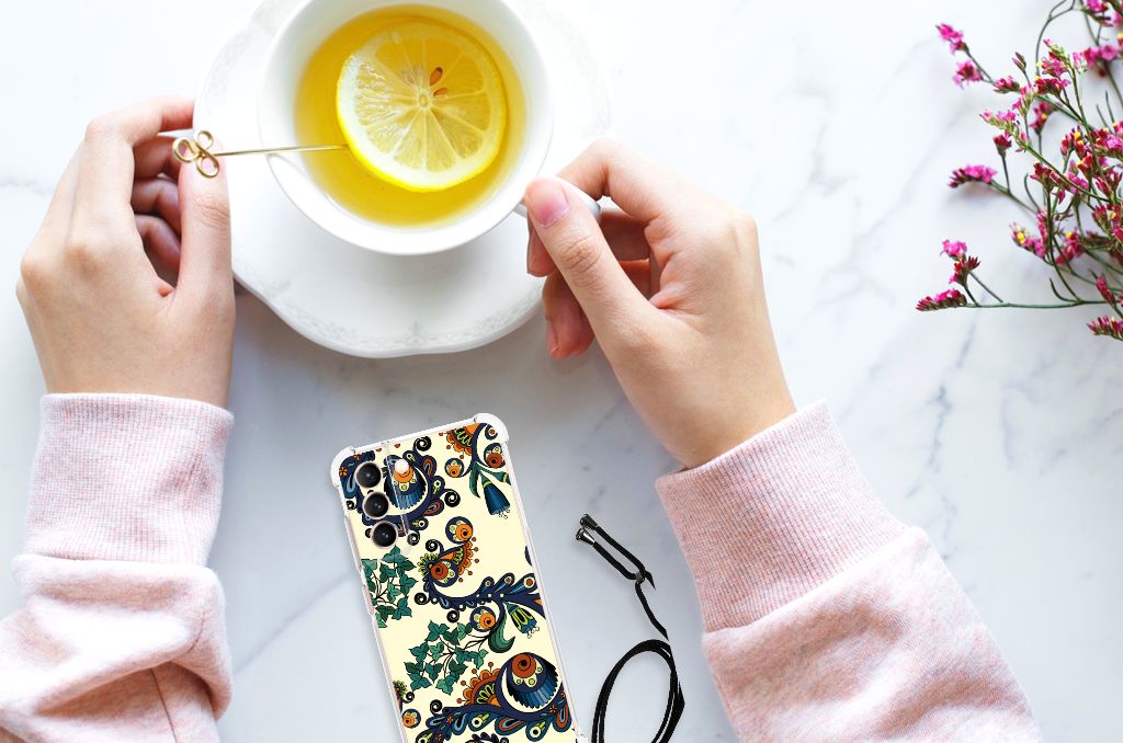 Ben je op zoek naar een uniek telefoonhoesje voor je Samsung Galaxy S21 FE? Dan ben je bij B2C Telecom aan het juiste adres! Speciaal voor jou hebben we dit prachtige Barok Flower design in onze collectie hoesjes opgenomen. Het design wordt bedrukt op een Anti Shock Case en is gemaakt van flexibel rubber. Het hoesje is perfect voor de actieve smartphonegebruiker door de opstaande randen/hoeken. Denk aan mensen die veel sporten, reizen of wandelen en net iets meer zekerheid willen als het op hun geliefde telefoon aankomt. Het design wordt alleen aan de bovenkant van het hoesje bedrukt en de randen blijven transparant. Aan de zijkanten zijn uitsparingen gemaakt waardoor je met gemak alle knoppen en poorten kunt bedienen. Wij adviseren om dit hoesje in combinatie met een screenprotector te gebruiken voor een langere levensduur van je telefoon. Wil je dit hoesje nog iets extra's geven? Voeg dan gratis je naam of een quote toe! Is dit design hoesje toch niet helemaal wat je zocht? Ontwerp dan zelf een hoesje in ons ontwerpprogramma.