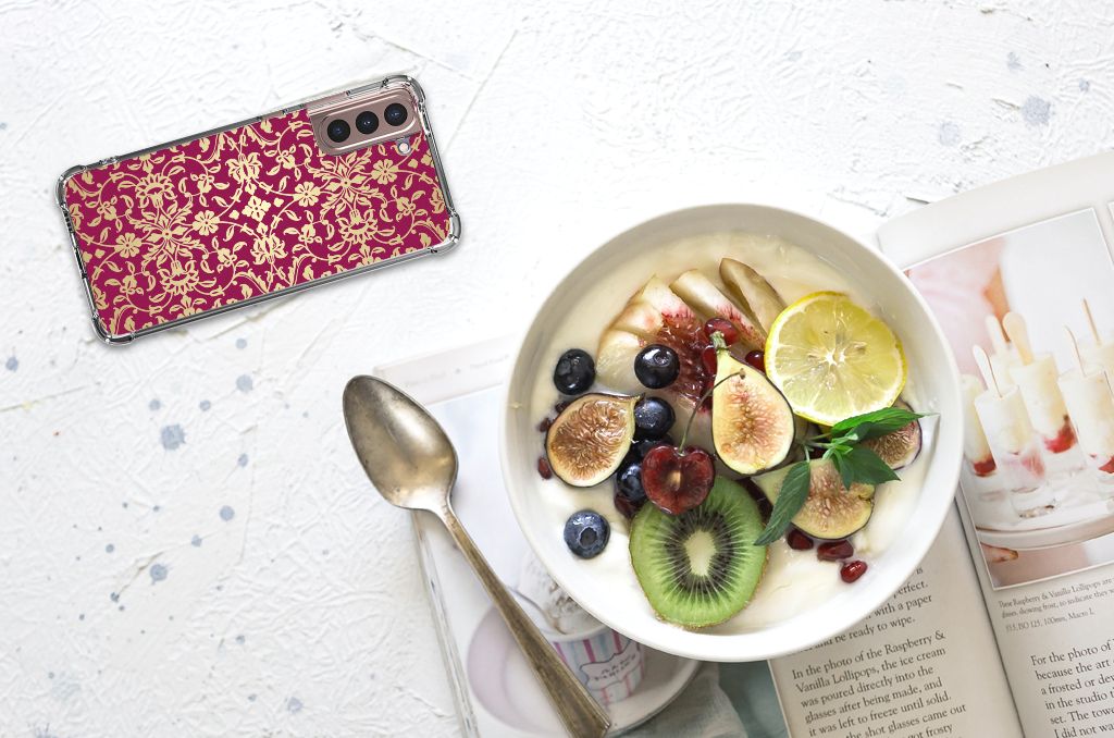 Ben je op zoek naar een uniek telefoonhoesje voor je Samsung Galaxy S21 Plus? Dan ben je bij B2C Telecom aan het juiste adres! Speciaal voor jou hebben we dit prachtige Barok Pink design in onze collectie hoesjes opgenomen. Het design wordt bedrukt op een Anti Shock Case en is gemaakt van flexibel rubber. Het hoesje is perfect voor de actieve smartphonegebruiker door de opstaande randen/hoeken. Denk aan mensen die veel sporten, reizen of wandelen en net iets meer zekerheid willen als het op hun geliefde telefoon aankomt. Het design wordt alleen aan de bovenkant van het hoesje bedrukt en de randen blijven transparant. Aan de zijkanten zijn uitsparingen gemaakt waardoor je met gemak alle knoppen en poorten kunt bedienen. Wij adviseren om dit hoesje in combinatie met een screenprotector te gebruiken voor een langere levensduur van je telefoon. Wil je dit hoesje nog iets extra's geven? Voeg dan gratis je naam of een quote toe! Is dit design hoesje toch niet helemaal wat je zocht? Ontwerp dan zelf een hoesje in ons ontwerpprogramma.