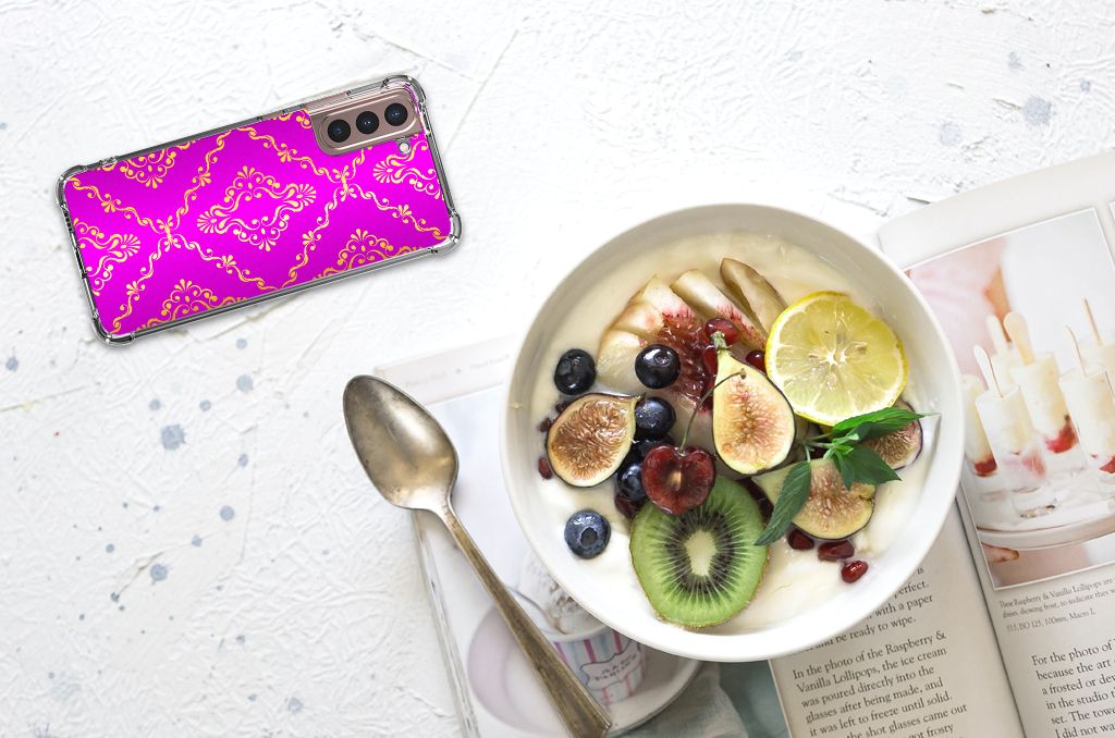 Ben je op zoek naar een uniek telefoonhoesje voor je Samsung Galaxy S21 Plus? Dan ben je bij B2C Telecom aan het juiste adres! Speciaal voor jou hebben we dit prachtige Barok Roze design in onze collectie hoesjes opgenomen. Het design wordt bedrukt op een Anti Shock Case en is gemaakt van flexibel rubber. Het hoesje is perfect voor de actieve smartphonegebruiker door de opstaande randen/hoeken. Denk aan mensen die veel sporten, reizen of wandelen en net iets meer zekerheid willen als het op hun geliefde telefoon aankomt. Het design wordt alleen aan de bovenkant van het hoesje bedrukt en de randen blijven transparant. Aan de zijkanten zijn uitsparingen gemaakt waardoor je met gemak alle knoppen en poorten kunt bedienen. Wij adviseren om dit hoesje in combinatie met een screenprotector te gebruiken voor een langere levensduur van je telefoon. Wil je dit hoesje nog iets extra's geven? Voeg dan gratis je naam of een quote toe! Is dit design hoesje toch niet helemaal wat je zocht? Ontwerp dan zelf een hoesje in ons ontwerpprogramma.