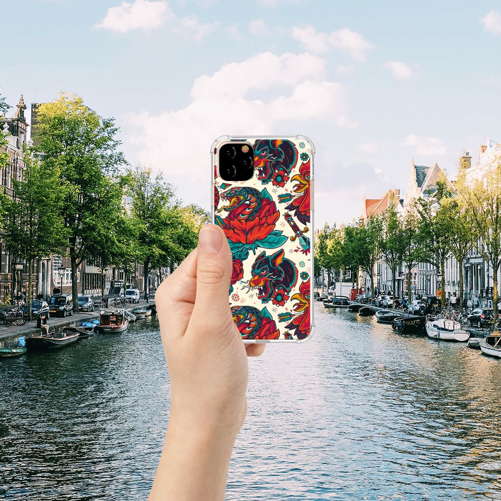 Ben je op zoek naar een stoer hoesje voor je Apple iPhone 11 Pro Max? Dan is dit hoesje in old skool stijl zeker iets voor jou! Het heeft wel iets weg van een tatoeage, vind je ook niet? Dit old skool vintage design wordt geprint op een Anti-shock Hoesje met foto. Het ligt prettig in de hand en is licht van gewicht. Ook fijn zijn de extra dikke hoeken en randen, waardoor je Apple iPhone 11 Pro Max goed beschermd is. Alleen de achterkant van je telefoon wordt beschermd. Daarom adviseren wij om dit hoesje in combinatie met een screenprotector te gebruiken. Bestel vandaag nog dit telefoonhoesje met stoere old skool design!