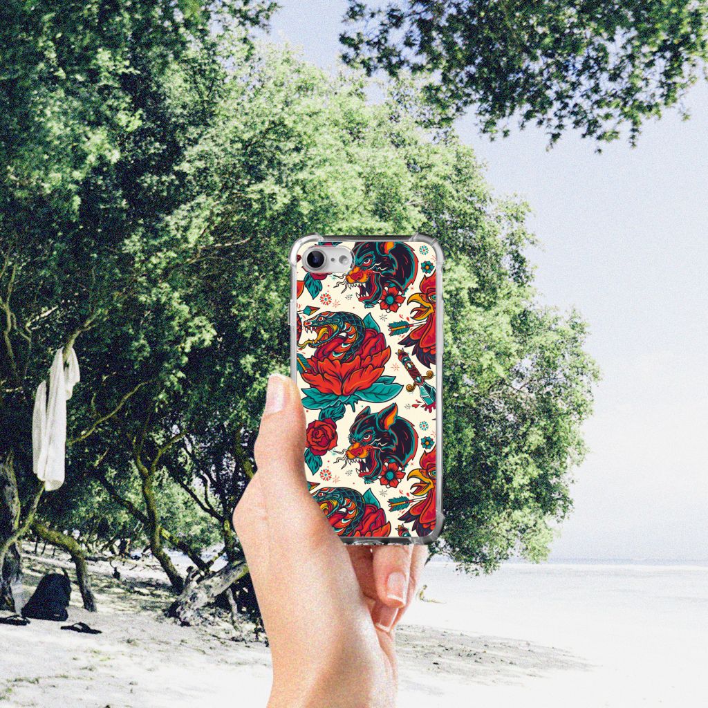 Ben je op zoek naar een stoer hoesje voor je iPhone SE 2022/2020 | iPhone 8/7? Dan is dit hoesje in old skool stijl zeker iets voor jou! Het heeft wel iets weg van een tatoeage, vind je ook niet? Dit old skool vintage design wordt geprint op een Anti-shock Hoesje met foto. Het ligt prettig in de hand en is licht van gewicht. Ook fijn zijn de extra dikke hoeken en randen, waardoor je iPhone SE 2022/2020 | iPhone 8/7 goed beschermd is. Alleen de achterkant van je telefoon wordt beschermd. Daarom adviseren wij om dit hoesje in combinatie met een screenprotector te gebruiken. Bestel vandaag nog dit telefoonhoesje met stoere old skool design!