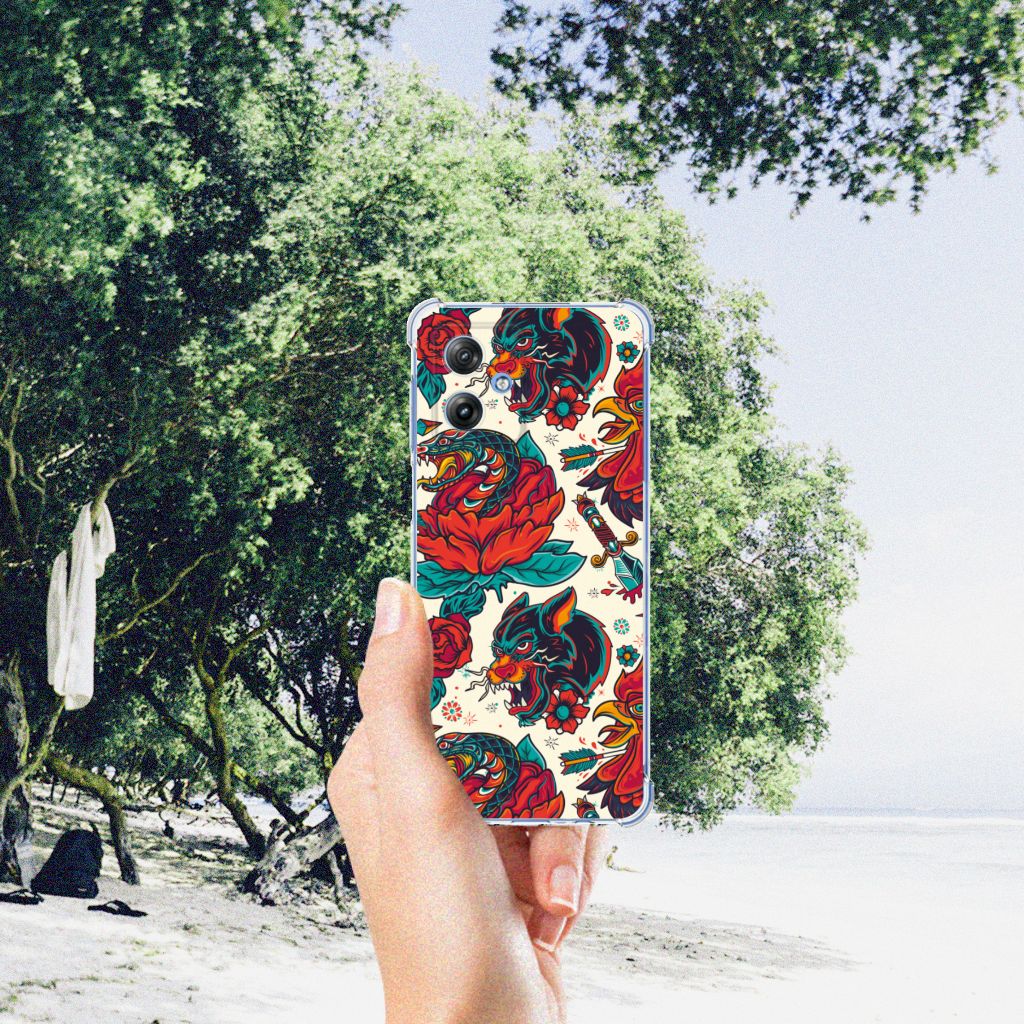 Ben je op zoek naar een stoer hoesje voor je Motorola Moto G54? Dan is dit hoesje in old skool stijl zeker iets voor jou! Het heeft wel iets weg van een tatoeage, vind je ook niet? Dit old skool vintage design wordt geprint op een Anti-shock Hoesje met foto. Het ligt prettig in de hand en is licht van gewicht. Ook fijn zijn de extra dikke hoeken en randen, waardoor je Motorola Moto G54 goed beschermd is. Alleen de achterkant van je telefoon wordt beschermd. Daarom adviseren wij om dit hoesje in combinatie met een screenprotector te gebruiken. Bestel vandaag nog dit telefoonhoesje met stoere old skool design!