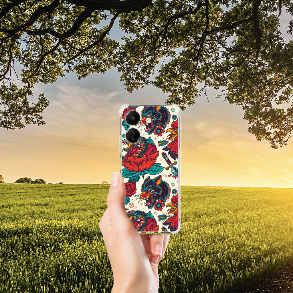 Ben je op zoek naar een stoer hoesje voor je Xiaomi Redmi 13C 4G? Dan is dit hoesje in old skool stijl zeker iets voor jou! Het heeft wel iets weg van een tatoeage, vind je ook niet? Dit old skool vintage design wordt geprint op een Anti-shock Hoesje met foto. Het ligt prettig in de hand en is licht van gewicht. Ook fijn zijn de extra dikke hoeken en randen, waardoor je Xiaomi Redmi 13C 4G goed beschermd is. Alleen de achterkant van je telefoon wordt beschermd. Daarom adviseren wij om dit hoesje in combinatie met een screenprotector te gebruiken. Bestel vandaag nog dit telefoonhoesje met stoere old skool design!