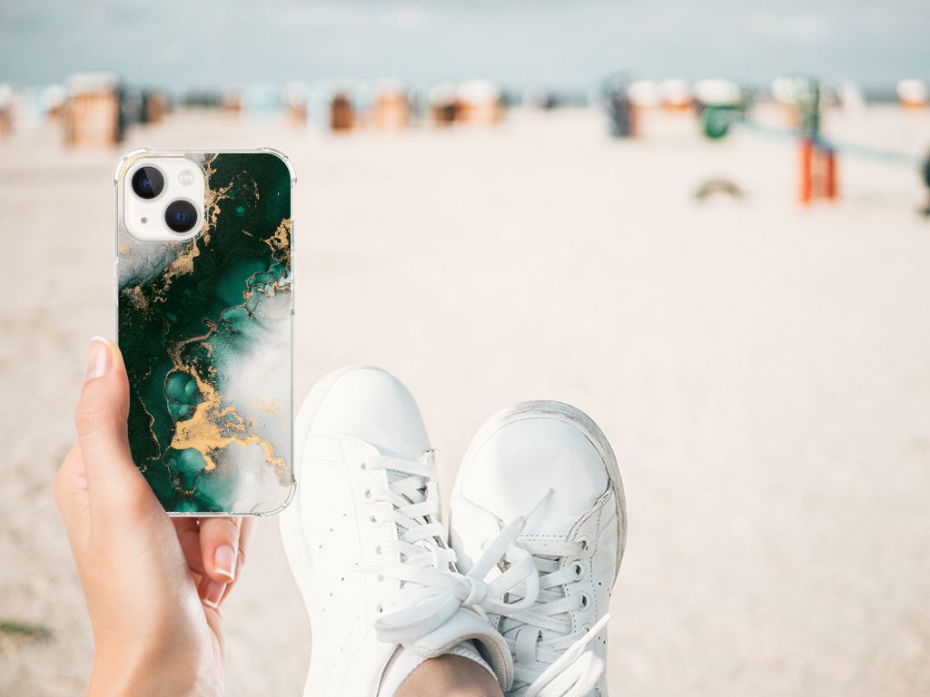Wist je dat het design marmer zwart het meest verkochte hoesje is? Om onze collectie stenen uit te breiden hebben we het design marmer groen toegevoegd om jouw iPhone 13 nog meer op te laten vallen. Dit marmer groene design wordt geprint op een Anti-Shock Hoesje. Het ligt prettig in de hand en is licht van gewicht. Ook fijn zijn de extra dikke hoeken en randen, waardoor je iPhone 13 goed beschermd is bij een val. Alleen de achterkant van je telefoon wordt beschermd. Daarom adviseren wij om dit hoesje in combinatie met een screenprotector te gebruiken. Bestel vandaag nog met dit telefoonhoesje met toffe marmer design hoesje!