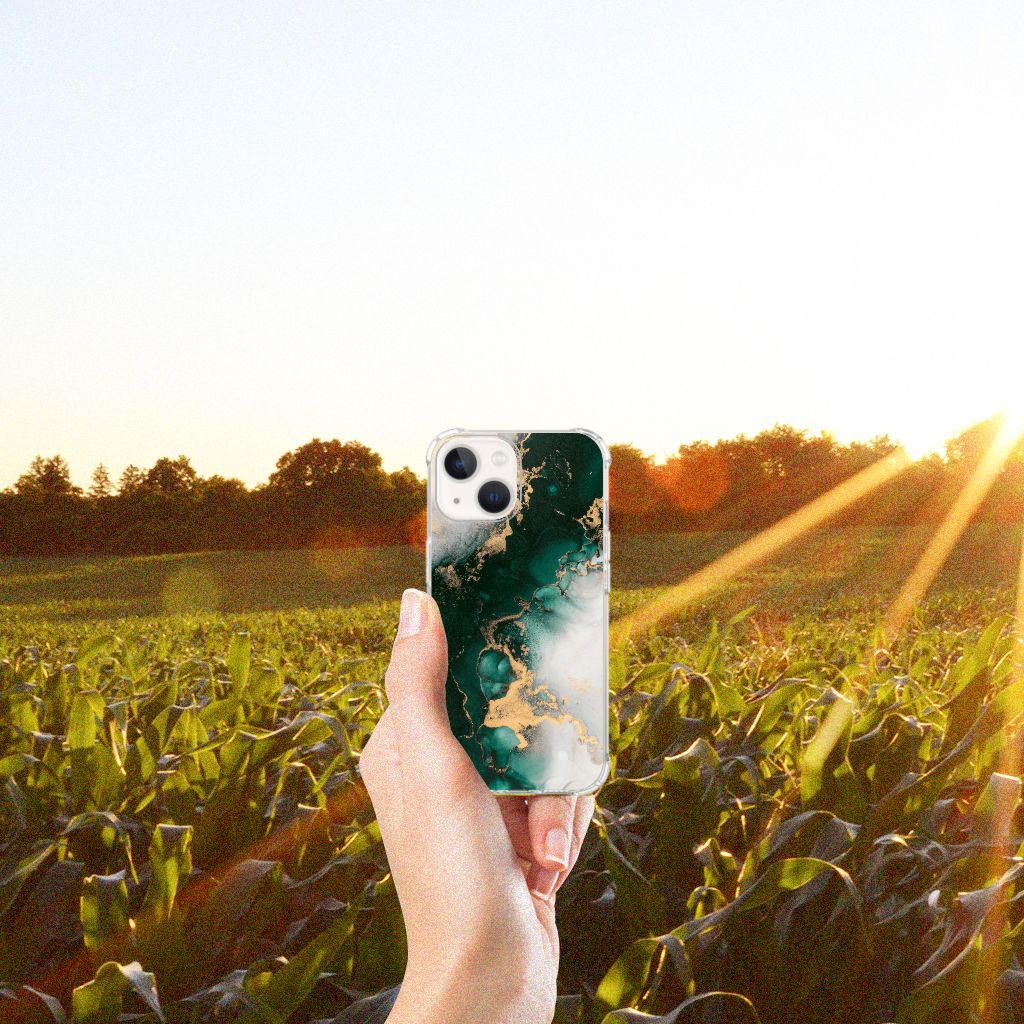 Wist je dat het design marmer zwart het meest verkochte hoesje is? Om onze collectie stenen uit te breiden hebben we het design marmer groen toegevoegd om jouw iPhone 13 mini nog meer op te laten vallen. Dit marmer groene design wordt geprint op een Anti-Shock Hoesje. Het ligt prettig in de hand en is licht van gewicht. Ook fijn zijn de extra dikke hoeken en randen, waardoor je iPhone 13 mini goed beschermd is bij een val. Alleen de achterkant van je telefoon wordt beschermd. Daarom adviseren wij om dit hoesje in combinatie met een screenprotector te gebruiken. Bestel vandaag nog met dit telefoonhoesje met toffe marmer design hoesje!