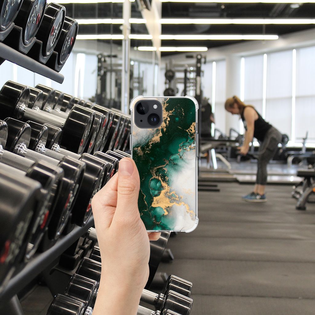 Wist je dat het design marmer zwart het meest verkochte hoesje is? Om onze collectie stenen uit te breiden hebben we het design marmer groen toegevoegd om jouw iPhone 15 Plus nog meer op te laten vallen. Dit marmer groene design wordt geprint op een Anti-Shock Hoesje. Het ligt prettig in de hand en is licht van gewicht. Ook fijn zijn de extra dikke hoeken en randen, waardoor je iPhone 15 Plus goed beschermd is bij een val. Alleen de achterkant van je telefoon wordt beschermd. Daarom adviseren wij om dit hoesje in combinatie met een screenprotector te gebruiken. Bestel vandaag nog met dit telefoonhoesje met toffe marmer design hoesje!