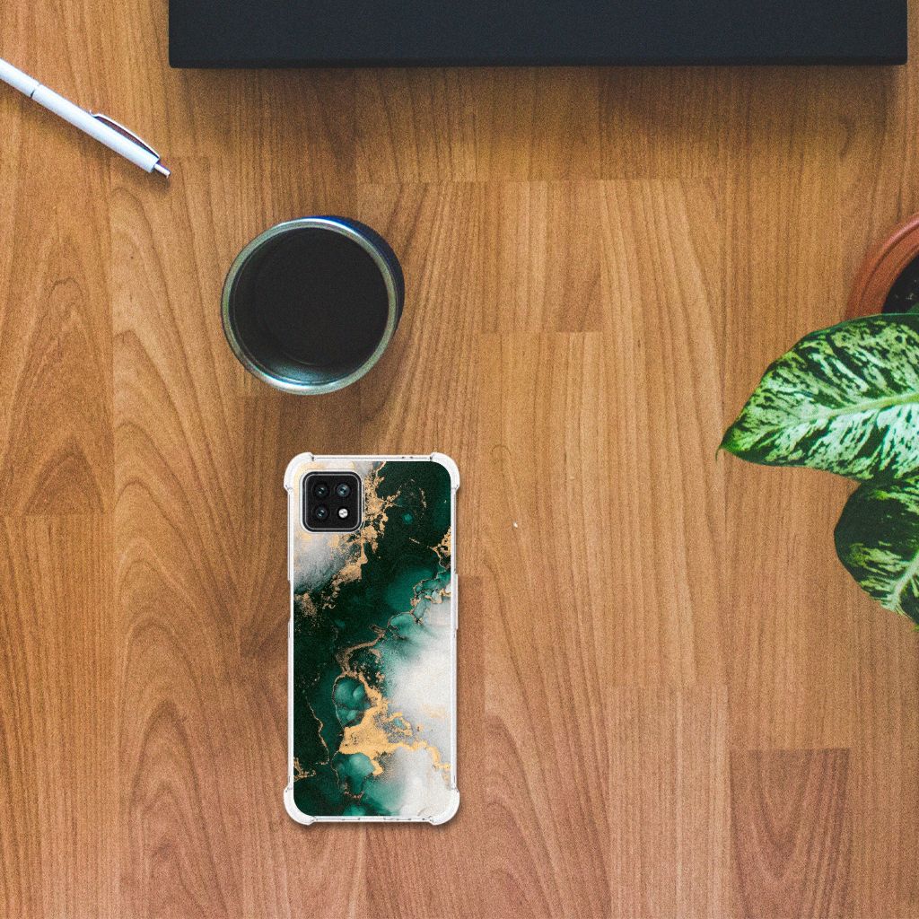 Wist je dat het design marmer zwart het meest verkochte hoesje is? Om onze collectie stenen uit te breiden hebben we het design marmer groen toegevoegd om jouw OPPO A53 5G | A73 5G nog meer op te laten vallen. Dit marmer groene design wordt geprint op een Anti-Shock Hoesje. Het ligt prettig in de hand en is licht van gewicht. Ook fijn zijn de extra dikke hoeken en randen, waardoor je OPPO A53 5G | A73 5G goed beschermd is bij een val. Alleen de achterkant van je telefoon wordt beschermd. Daarom adviseren wij om dit hoesje in combinatie met een screenprotector te gebruiken. Bestel vandaag nog met dit telefoonhoesje met toffe marmer design hoesje!