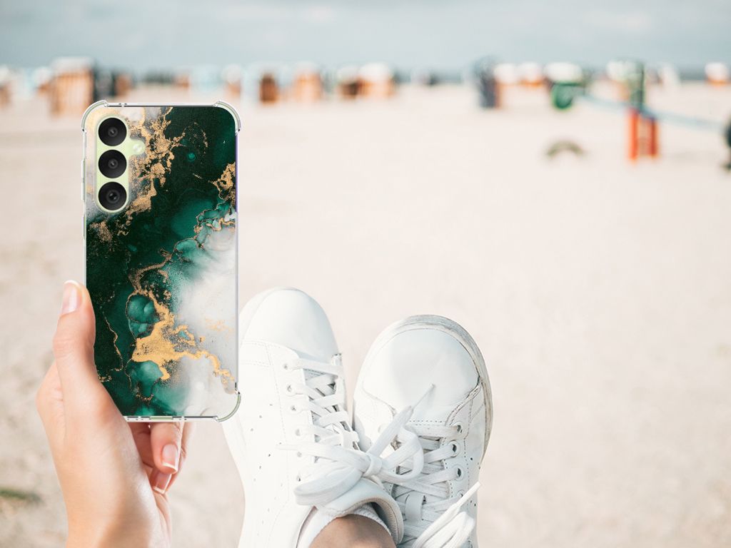 Wist je dat het design marmer zwart het meest verkochte hoesje is? Om onze collectie stenen uit te breiden hebben we het design marmer groen toegevoegd om jouw Samsung Galaxy A35 nog meer op te laten vallen. Dit marmer groene design wordt geprint op een Anti-Shock Hoesje. Het ligt prettig in de hand en is licht van gewicht. Ook fijn zijn de extra dikke hoeken en randen, waardoor je Samsung Galaxy A35 goed beschermd is bij een val. Alleen de achterkant van je telefoon wordt beschermd. Daarom adviseren wij om dit hoesje in combinatie met een screenprotector te gebruiken. Bestel vandaag nog met dit telefoonhoesje met toffe marmer design hoesje!