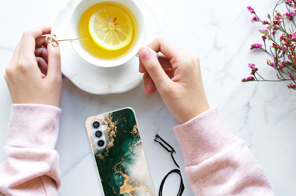 Wist je dat het design marmer zwart het meest verkochte hoesje is? Om onze collectie stenen uit te breiden hebben we het design marmer groen toegevoegd om jouw Samsung Galaxy A54 5G nog meer op te laten vallen. Dit marmer groene design wordt geprint op een Anti-Shock Hoesje. Het ligt prettig in de hand en is licht van gewicht. Ook fijn zijn de extra dikke hoeken en randen, waardoor je Samsung Galaxy A54 5G goed beschermd is bij een val. Alleen de achterkant van je telefoon wordt beschermd. Daarom adviseren wij om dit hoesje in combinatie met een screenprotector te gebruiken. Bestel vandaag nog met dit telefoonhoesje met toffe marmer design hoesje!