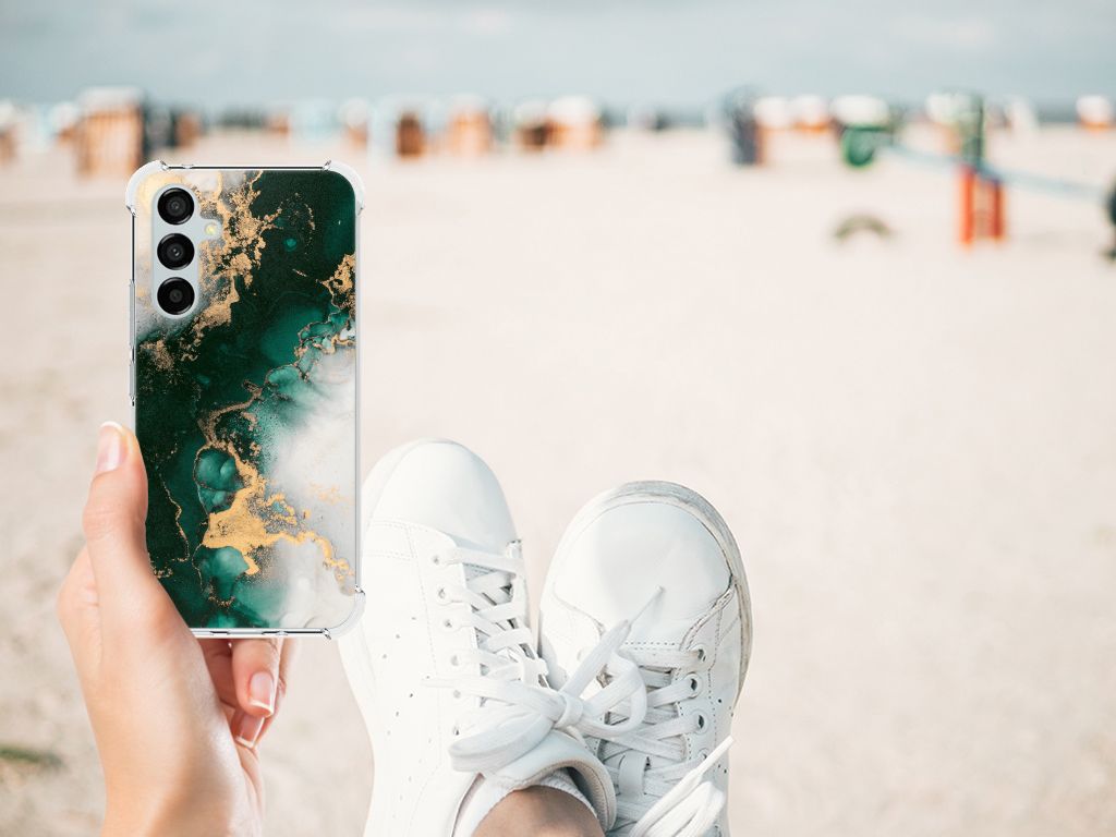 Wist je dat het design marmer zwart het meest verkochte hoesje is? Om onze collectie stenen uit te breiden hebben we het design marmer groen toegevoegd om jouw Samsung Galaxy A54 nog meer op te laten vallen. Dit marmer groene design wordt geprint op een Anti-Shock Hoesje. Het ligt prettig in de hand en is licht van gewicht. Ook fijn zijn de extra dikke hoeken en randen, waardoor je Samsung Galaxy A54 goed beschermd is bij een val. Alleen de achterkant van je telefoon wordt beschermd. Daarom adviseren wij om dit hoesje in combinatie met een screenprotector te gebruiken. Bestel vandaag nog met dit telefoonhoesje met toffe marmer design hoesje!