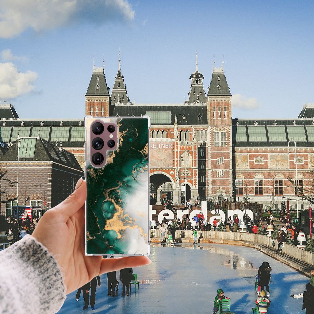 Wist je dat het design marmer zwart het meest verkochte hoesje is? Om onze collectie stenen uit te breiden hebben we het design marmer groen toegevoegd om jouw Samsung Galaxy S23 Ultra nog meer op te laten vallen. Dit marmer groene design wordt geprint op een Anti-Shock Hoesje. Het ligt prettig in de hand en is licht van gewicht. Ook fijn zijn de extra dikke hoeken en randen, waardoor je Samsung Galaxy S23 Ultra goed beschermd is bij een val. Alleen de achterkant van je telefoon wordt beschermd. Daarom adviseren wij om dit hoesje in combinatie met een screenprotector te gebruiken. Bestel vandaag nog met dit telefoonhoesje met toffe marmer design hoesje!