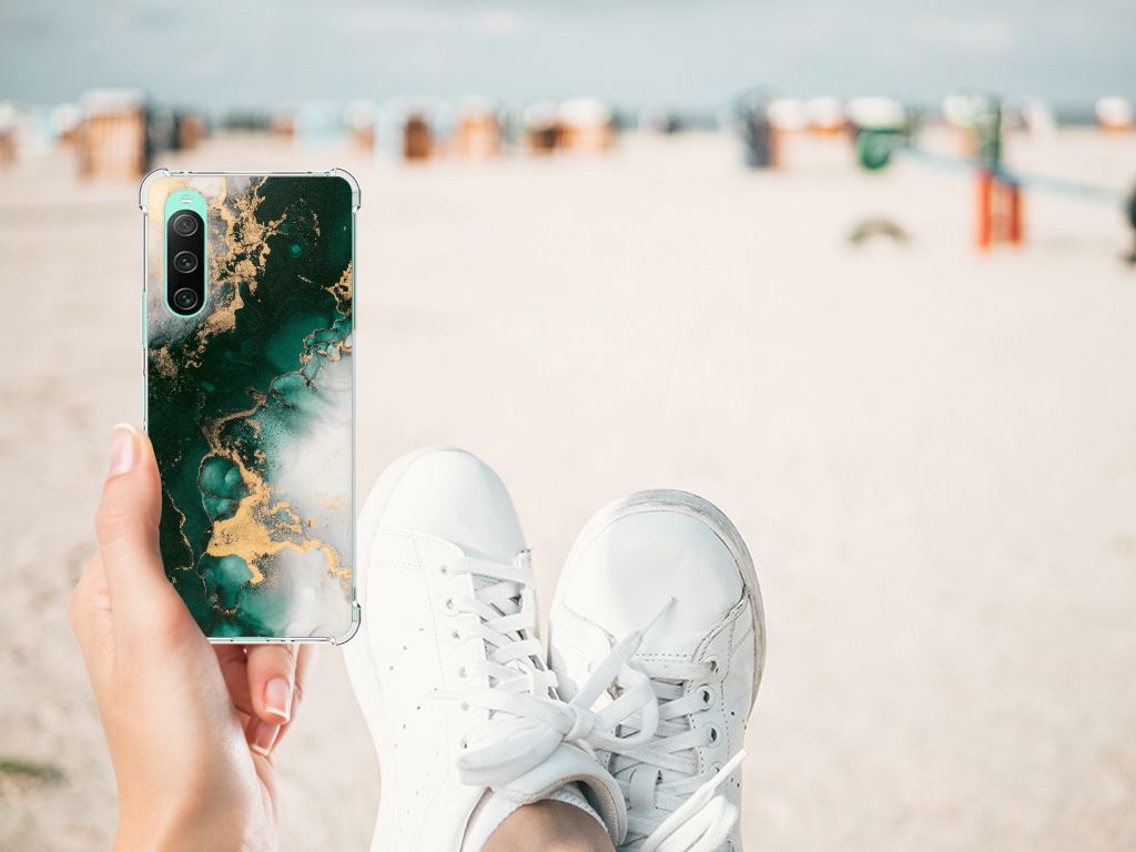 Wist je dat het design marmer zwart het meest verkochte hoesje is? Om onze collectie stenen uit te breiden hebben we het design marmer groen toegevoegd om jouw Sony Xperia 10 V nog meer op te laten vallen. Dit marmer groene design wordt geprint op een Anti-Shock Hoesje. Het ligt prettig in de hand en is licht van gewicht. Ook fijn zijn de extra dikke hoeken en randen, waardoor je Sony Xperia 10 V goed beschermd is bij een val. Alleen de achterkant van je telefoon wordt beschermd. Daarom adviseren wij om dit hoesje in combinatie met een screenprotector te gebruiken. Bestel vandaag nog met dit telefoonhoesje met toffe marmer design hoesje!