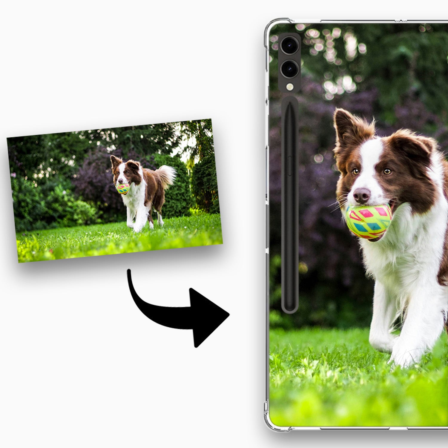 TPU Back Cover Hoesje Maken Samsung Galaxy Tab S9 Plus. Ben je op zoek naar originele en unieke bescherming voor je tablet? Dan ben je bij B2C Telecom aan het juiste adres! Je kunt via onze website gemakkelijk een tablethoesje maken met foto's, tekst of bedrijfslogo. Wees zo creatief mogelijk en upload foto's of plaatjes van je kinderen, huisdieren, familie, hobby of favoriete voetbalclub. De foto's of plaatjes kun je vergroten, verkleinen of draaien voor een speels effect. Maak het tablet hoesje persoonlijker door je naam of quote aan toe te voegen. Daarnaast kun je ook de keuze maken uit verschillende lettertypes van strak tot dik gedrukt of toch iets sierlijk?. Het kan allemaal! De kers op de taart is natuurlijk de toevoeging van een glossy-effect! Kies uit verschillende effecten en jouw tablethoesje wordt subtiel bedrukt met een glossy-effect. Kortom verschillende mogelijkheden om een hoesje zo persoonlijk en uniek mogelijk te maken! Ben je ook benieuwd op wat voor een hoesje jouw ontwerp wordt bedrukt? Lees dan verder! Jouw ontwerp wordt bedrukt op een transparante TPU hoesje. Een groot voordeel van TPU is dat het gemaakt is van een rubbersoort en niet breekbaar is! De randen van je tablet worden door dit hoesje goed beschermt door de extra dikke hoeken. In het hoesje zijn dichte uitsparingen gemaakt voor de knoppen aan de zijkant en open uitsparingen voor de oplader en headset. Goed om te weten is dat de bovenkant van het hoesje wordt bedrukt en de randen dus transparant blijven. Overtuigd? Begin dan direct met ontwerpen.