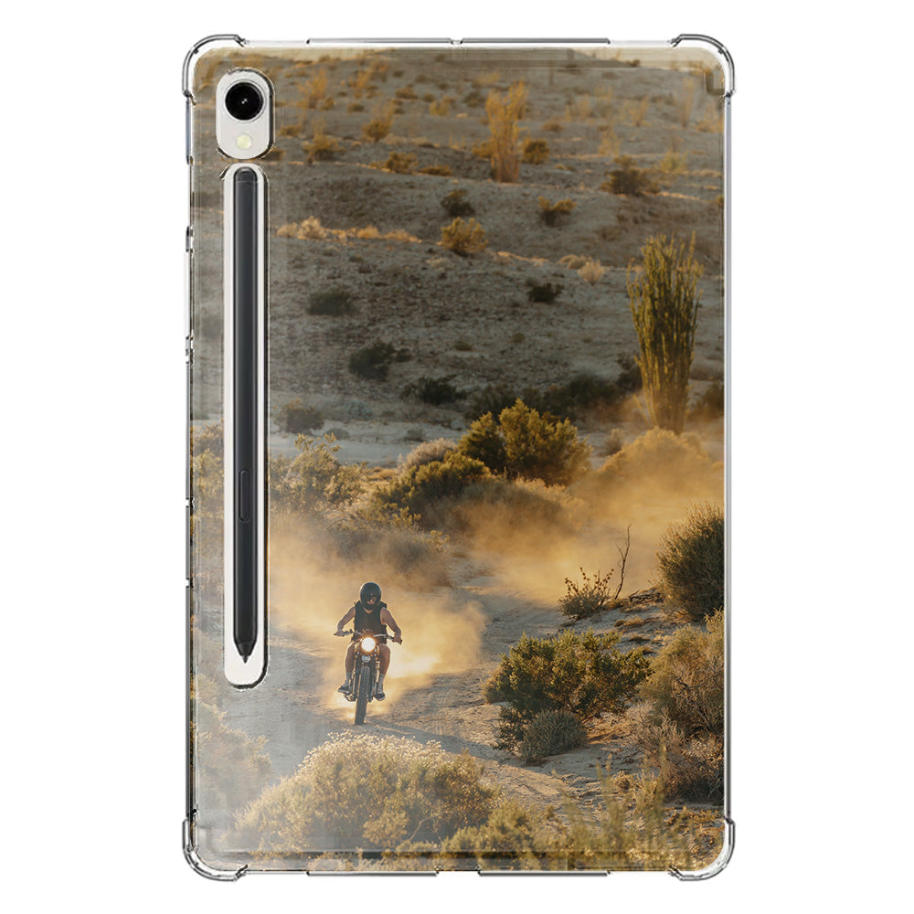 TPU Back Cover Hoesje Maken Samsung Galaxy Tab S9. Ben je op zoek naar originele en unieke bescherming voor je tablet? Dan ben je bij B2C Telecom aan het juiste adres! Je kunt via onze website gemakkelijk een tablethoesje maken met foto's, tekst of bedrijfslogo. Wees zo creatief mogelijk en upload foto's of plaatjes van je kinderen, huisdieren, familie, hobby of favoriete voetbalclub. De foto's of plaatjes kun je vergroten, verkleinen of draaien voor een speels effect. Maak het tablet hoesje persoonlijker door je naam of quote aan toe te voegen. Daarnaast kun je ook de keuze maken uit verschillende lettertypes van strak tot dik gedrukt of toch iets sierlijk?. Het kan allemaal! De kers op de taart is natuurlijk de toevoeging van een glossy-effect! Kies uit verschillende effecten en jouw tablethoesje wordt subtiel bedrukt met een glossy-effect. Kortom verschillende mogelijkheden om een hoesje zo persoonlijk en uniek mogelijk te maken! Ben je ook benieuwd op wat voor een hoesje jouw ontwerp wordt bedrukt? Lees dan verder! Jouw ontwerp wordt bedrukt op een transparante TPU hoesje. Een groot voordeel van TPU is dat het gemaakt is van een rubbersoort en niet breekbaar is! De randen van je tablet worden door dit hoesje goed beschermt door de extra dikke hoeken. In het hoesje zijn dichte uitsparingen gemaakt voor de knoppen aan de zijkant en open uitsparingen voor de oplader en headset. Goed om te weten is dat de bovenkant van het hoesje wordt bedrukt en de randen dus transparant blijven. Overtuigd? Begin dan direct met ontwerpen.