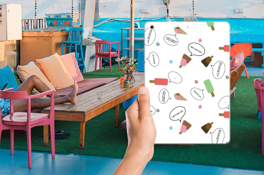 Van deze vrolijke Apple iPad 10.2 | iPad 10.2 (2020) | 10.2 (2021) Tablet Cover met daarop verschillende soorten ijsjes met tekstwolkjes krijg je sowieso een vrij en zomers gevoel. De zomer komt naar je toe met deze print van ijsjes met tekstwolkjes. Ben je op het strand, dan ontbreekt een lekker ijsje natuurlijk niet. Net zoals je je tablet bij de hand hebt, met daaromheen een design hoesje met bijzondere ijsjes en tekstwolkjes. Jouw tablet kan dan de bescherming in de vorm van een tablethoesje met ijsjes zeer goed gebruiken. De bovenkant van dit hoesje wordt bedrukt met ijsjes en tekstwolkjes, de zijkanten blijven doorzichtig. De case is gemaakt van schokabsorberend materiaal en past altijd in je tas. Onder alle weersomstandigheden zal deze case perfect functioneren, ook in de zomer met een ijsje in je hand.
