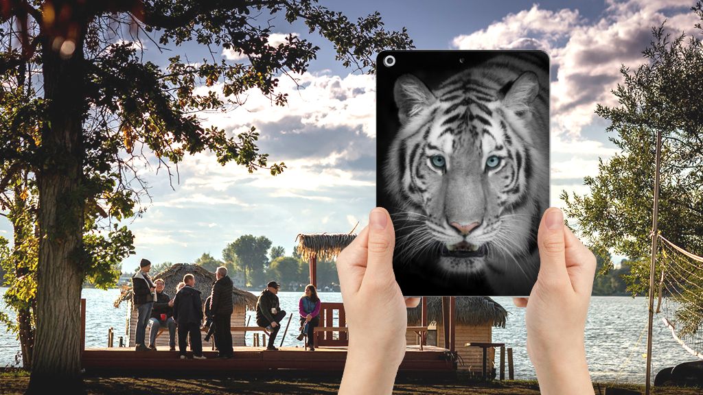 Omdat de Witte Tijger zo bijzonder is, zijn wij bereid deze voor zeer lage kosten op een tpu case te zetten. Dit kunnen we zo goedkoop doen omdat we het drukwerk in eigen beheer doen. Witte tijgers leefden lange tijd in de bossen van India, Bangladesh, Nepal, Bhutan en China en kunnen wel 257 kilo wegen. Dit zwaargewicht kunnen we bedrukken op verschillende soorten hoesjes, zoals deze tpu cases. Deze Apple iPad 9.7 2018 | 2017 Back Case kan exclusief in het bezit van jou komen. Zeker als je er zelf nog unieke teksten en/of beelden aan toevoegt. Het tpu hoesje is zeer flexibel en wordt alleen aan de bovenzijde bedrukt. De randen van dit flexibele hoesje blijven doorzichtig. Tegenwoordig zijn witte tijgers alleen in gevangenschap te bewonderen. Jij zorgt voor een goede bescherming van je tablet met dit design hoesje met witte tijger.