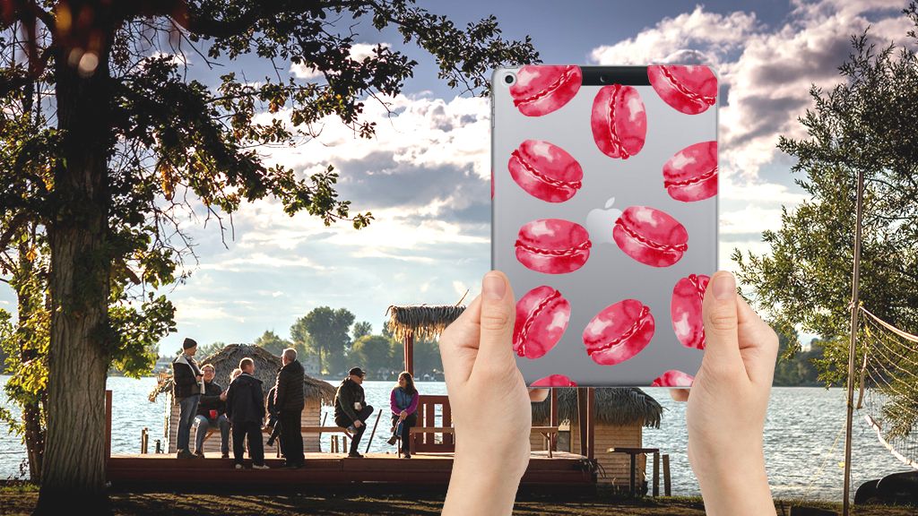 Dit hoesje met Pink Macarons is een zeer opvallende bescherming voor jouw tablet. Macarons zijn Franse koekjes: kleine, rond en luchtig. Ze worden in veel verschillende smaken gemaakt, herkenbaar aan de verschillende kleuren zoals chocolade (donkerbruin), mokka (middenbruin), kersen (rood), pistache (groen), aardbei (roze), framboos (karmijn). Deze kleuren kun je niet allemaal zien op dit fraaie design hoesje met roze macarons. Heb je altijd al een Apple iPad 9.7 2018 | 2017 Tablet Cover willen hebben met roze macarons? Grijp dan nu je kans. Deze case heeft zeer veel goede eigenschappen, zoals elastisch vermogen, flexibiliteit en schokbestendigheid. Dit design hoesje met roze macarons wordt aan de bovenkant bedrukt, de zijkanten blijven doorzichtig. De case heeft opstaande randen aan de voorzijde en beschermt samen met een screenprotector jouw tablet perfect. De case heeft ook een handige standaard.