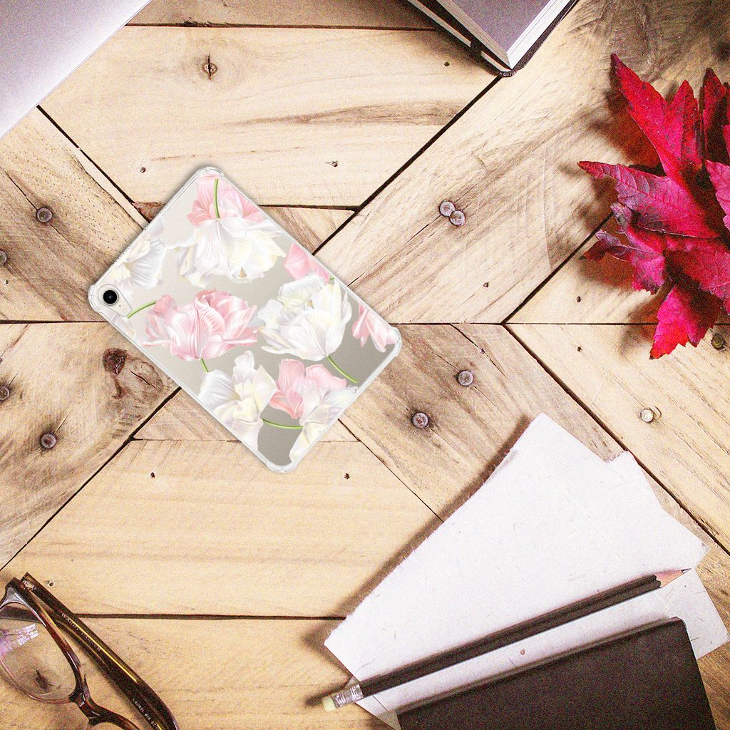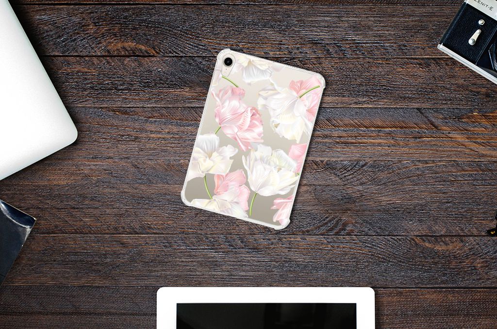 Een bosje bloemen doet een mens (en zijn tablet) goed. De witte en roze bloemen op deze Apple iPad mini 6 (2021) Siliconen Hoesje geven jouw tablet een zeer mooie uitstraling. Je wordt er ook meteen een stuk rustiger van als je aan het appen of aan het bellen bent. Valt dan je tablet op de grond, dan zal er dankzij deze case met het design Lovely Flowers ontstaan. Helemaal niet als je er een screenprotector bij hebt gekocht. Onze hoesjes met roze en witte bloemen zien er zeer prettig uit en zijn heel praktisch, getuige onder meer de opstaande randen en het flexibele materiaal. Alleen de achterkant van het hoesje wordt bedrukt met roze en witte bloemen en de randen blijven transparant.