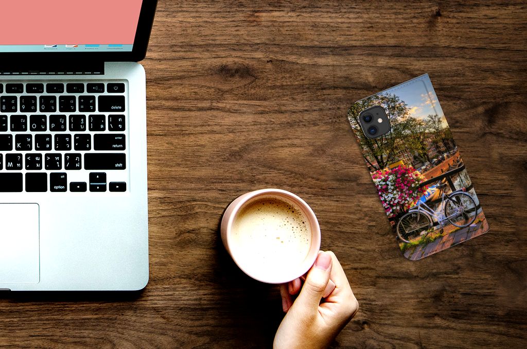 Amsterdam is meer dan ooit een toeristische trekpleister. Een bezoek aan de hoofdstad is niet compleet als er geen bezoek is gebracht aan de Amsterdamse Grachten. Ze zijn een symbool van de stad en hebben een enorme culturele en historische waarde. Daarom kunnen ze natuurlijk niet ontbreken in onze collectie design hoesjes. Dit schitterende design hoesje met Amsterdamse grachten tref je enkel en alleen aan bij B2C Telecom. De ondergaande zon en de fleurige en fraaie bloempakketten zorgen voor een prachtig totaalplaatje. Amsterdam is wereldberoemd om haar prachtige grachten uit de zeventiende eeuw. Dit smartphone hoesje is hier een eerbetoon aan. Het design staat op een stand case. Deze Apple iPhone 11 Book Cover beschermt jouw telefoon aan alle kanten en beschikt over een 1 opbergvakje en een speciale standaard. Het hoesje wordt afgesloten met een magneet aan de binnenzijde. De houder aan de binnenzijde is van TPU. Alle zijden van de stand case worden bedrukt.