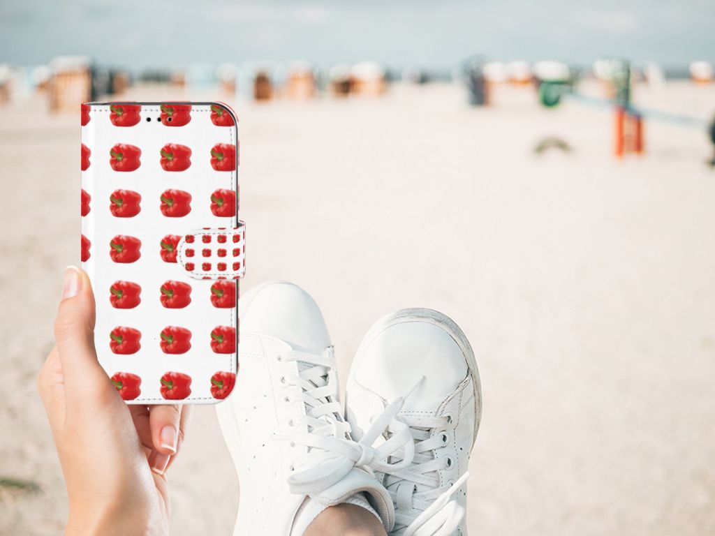 Er zit pit in jouw Apple iPhone 11 Book Cover dankzij dit design met rode paprika’s. Paprika’s zijn er in allerlei kleuren en vormen en ze hebben gemeen dat ze heel erg gezond zijn. De rode paprika’s op deze case staan op een grijs met witte geblokte achtergrond en vormen een opvallende verschijning. Heb jij ooit iemand in je nabije omgeving rond zien lopen met een design hoesje met rode paprika’s? Waarschijnlijk niet. Dit boekhoesje met rode paprika’s beschermt jouw telefoon aan alle zijden en beschikt over verschillende opbergvakjes voor pasjes en briefgeld. De case sluit perfect af met het magnetische lipje aan de buitenkant. Zeker weten dat je met dit hoesje met rode paprika’s een smartphone accessoire te pakken hebt waarmee je jezelf in de schijnwerpers zet. De houder aan de binnenzijde van het boekhoesje met rode paprika’s is van TPU. Als je andere kleuren paprika’s op je hoesje wilt, raden we je aan ons assortiment design hoesjes te bekijken of zelf een hoesje te ontwerpen.
