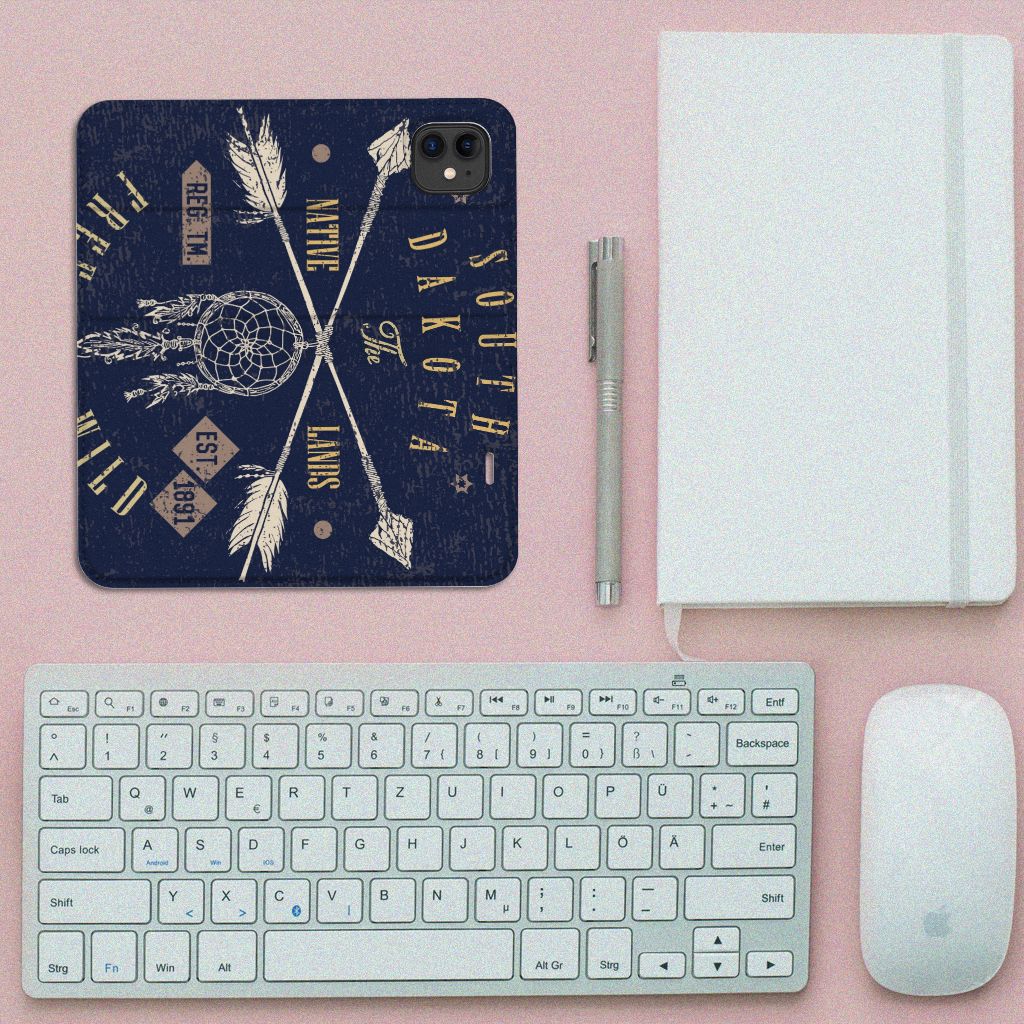 Het gebied dat nu South Dakota heet werd oorspronkelijk bevolkt door Indianenstammen, vandaar dat dit design hoesje er wellicht zo stoer uitziet. Het is ook nog eens zeer stevig. Stand cases bieden de allerbeste bescherming voor jouw smartphone, dit komt omdat ze jouw apparaat compleet afsluiten van invloeden van buitenaf. Alle zijden van een Apple iPhone 11 Book Cover worden bedrukt, pas nadat jij je bestelling hebt geplaatst. In het westen van South Dakota bevinden zich de Black Hills, hier is het wereldberoemde Mount Rushmore-monument te vinden. Wellicht dat dit ook nog eens op onze hoesjes komt te staan, voor nu moet je het doen met deze South Dakota print. De stand case heet niet voor niet zo. Het is een case met een standaard, voorzien van magnetische sluiting en een opbergvakje. Gecombineerd met de TPU houder aan de binnenkant, zorgt dit voor een perfecte bescherming van jouw telefoon.
