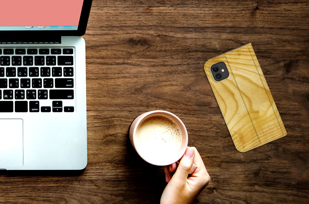 Apple iPhone 11 Book Style Case Donker Hout