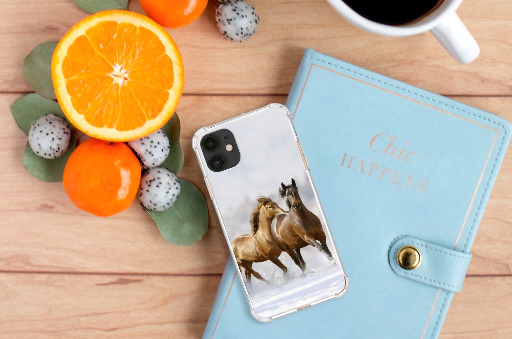 Ben je op zoek naar een uniek telefoonhoesje voor je Apple iPhone 11? Dan ben je bij B2C Telecom aan het juiste adres! Speciaal voor jou hebben we dit prachtige Paarden in onze collectie hoesjes opgenomen. Het design wordt bedrukt op een Case Anti-shock en is gemaakt van flexibel rubber. Het hoesje is perfect voor de actieve smartphonegebruiker door de opstaande randen/hoeken. Denk aan mensen die veel sporten, reizen of wandelen en net iets meer zekerheid willen als het op hun geliefde telefoon aankomt. Het design wordt alleen aan de bovenkant van het hoesje bedrukt en de randen blijven transparant. Aan de zijkanten zijn uitsparingen gemaakt waardoor je met gemak alle knoppen en poorten kunt bedienen. Wij adviseren om dit hoesje in combinatie met een screenprotector te gebruiken voor een langere levensduur van je telefoon. Wil je dit hoesje nog iets extra's geven? Voeg dan gratis je naam of een quote toe! Is dit design hoesje toch niet helemaal wat je zocht? Ontwerp dan zelf een hoesje in ons ontwerpprogramma.