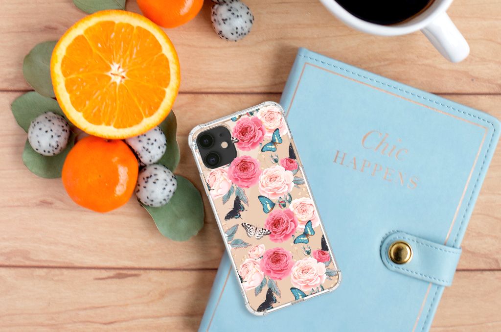 Ben je op zoek naar een uniek telefoonhoesje voor je Apple iPhone 11? Dan ben je bij B2C Telecom aan het juiste adres! Speciaal voor jou hebben we dit prachtige Butterfly Roses design in onze collectie hoesjes opgenomen. Het design wordt bedrukt op een Case en is gemaakt van flexibel rubber. Het hoesje is perfect voor de actieve smartphonegebruiker door de opstaande randen/hoeken. Denk aan mensen die veel sporten, reizen of wandelen en net iets meer zekerheid willen als het op hun geliefde telefoon aankomt. Het design wordt alleen aan de bovenkant van het hoesje bedrukt en de randen blijven transparant. Aan de zijkanten zijn uitsparingen gemaakt waardoor je met gemak alle knoppen en poorten kunt bedienen. Wij adviseren om dit hoesje in combinatie met een screenprotector te gebruiken voor een langere levensduur van je telefoon. Wil je dit hoesje nog iets extra's geven? Voeg dan gratis je naam of een quote toe! Is dit design hoesje toch niet helemaal wat je zocht? Ontwerp dan zelf een hoesje in ons ontwerpprogramma.