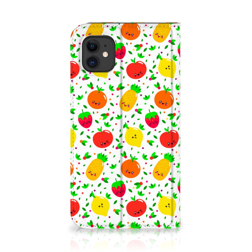 Een fris, fruitig en vrolijk hoesje, deze case met afbeeldingen van aardbeien, ananassen, appels, sinaasappels en citroenen. Minstens twee stuks fruit per dag wordt aanbevolen als dagelijkse hoeveelheid voor de mens. Dit verkleint de kans op allerlei ziekten. Dus met het aantal stukken fruit op de Apple iPhone 11 Flip Style Cover zou je wel een maandje zoet moeten zijn. Met het hoesje zelf kun je je hele leven doen, dit is namelijk niet stuk te krijgen. Dit komt door het sterke en flexibele materiaal waarvan het gemaakt is. De vrolijk stemmende case het desing Fruits maakt jouw telefoon dus zeer duurzaam. Zorg ervoor dat jouw smartphone gezond blijft en kies voor dit hoesje met frivool fruit. Een stand case met fruit beschermt jouw telefoon aan alle kanten en beschikt over een 1 opbergvakje en een speciale standaard. Het hoesje met fruit wordt afgesloten met een magneet aan de binnenzijde. De houder aan de binnenzijde is van TPU.