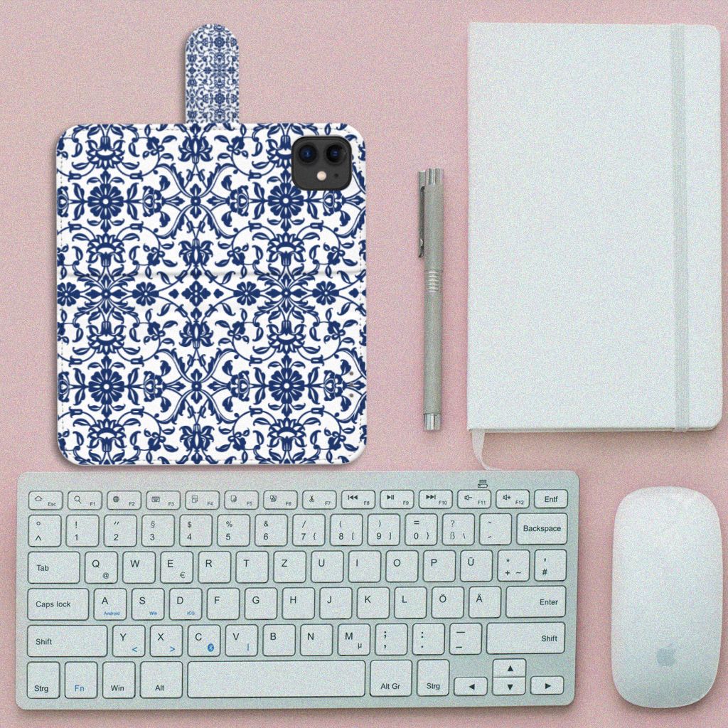 Apple iPhone 11 Hoesje met ruimte voor drie pasjes Flower Blue