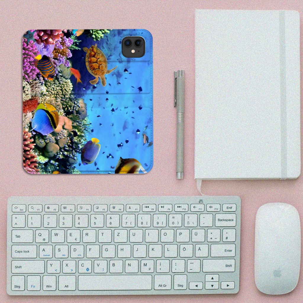Dit kleurrijke hoesje met tropische Vissen is een ware eyecatcher. Als je aan het duiken bent en je treft een school aan met dit soort opvallende vissen, dan heb je een geweldige ervaring. Maar je hoeft er eigenlijk niet per se het water voor in te duiken. Want wij hebben een schitterende verzameling vissen op dit design hoesje gezet. Met onze zeer geavanceerde printer zetten we de afbeelding van vissen op alle zijden van de Apple iPhone 11 Hoesje maken. De case heeft aan de binnenkant een vakje waarin je jouw creditcard of ander pasje kwijt kunt. Ga je een dagje vissen, dan hoef je de portemonnee dus ook niet op zak te hebben. Verder is je telefoon natuurlijk maximaal beschermd met deze stand case met print van tropische vissen. De houder aan de binnenzijde van het design hoesje met vissen print is van TPU.