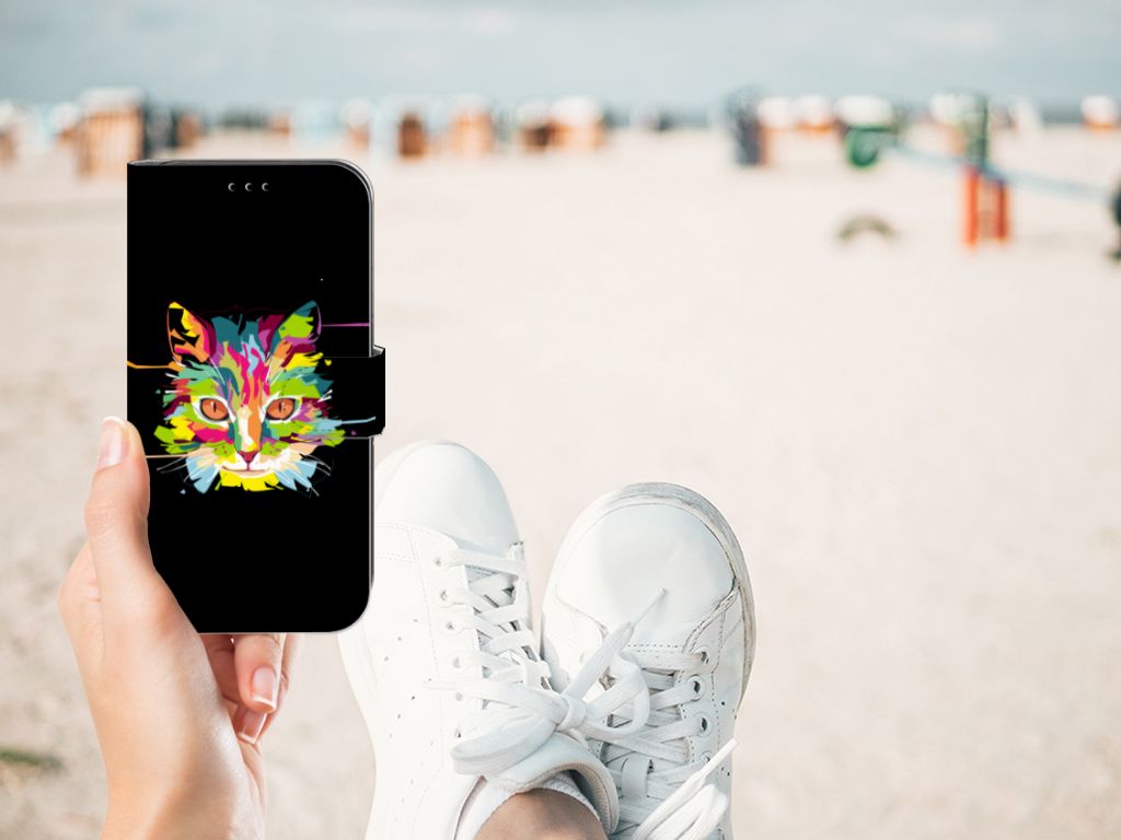 Als jij van katten houdt en op zoek bent naar een uniek hoesje, dan is dit het hoesje wat je wilt hebben. Op de voorkant van dit Leuk Hoesje vind je namelijk een mooie afbeelding van een kat in alle kleuren van de regenboog op een zwarte klassieke achtergrond. Naast dat het een mooi hoesje betreft, is het ook nog eens ontzettend handig. Zo kun je in deze bookcase wel twee á drie pasjes en briefgeld kwijt. Hiermee kun je jouw belangrijkste bezittingen op een plek bewaren in het boekhoesje en kun je jouw portemonnee voortaan thuislaten. Een bookcase heeft daarnaast ook nog het voordeel dat jouw telefoon aan alle zijdes wordt beschermd in dit leuke hoesje, dubbel zo handig dus!