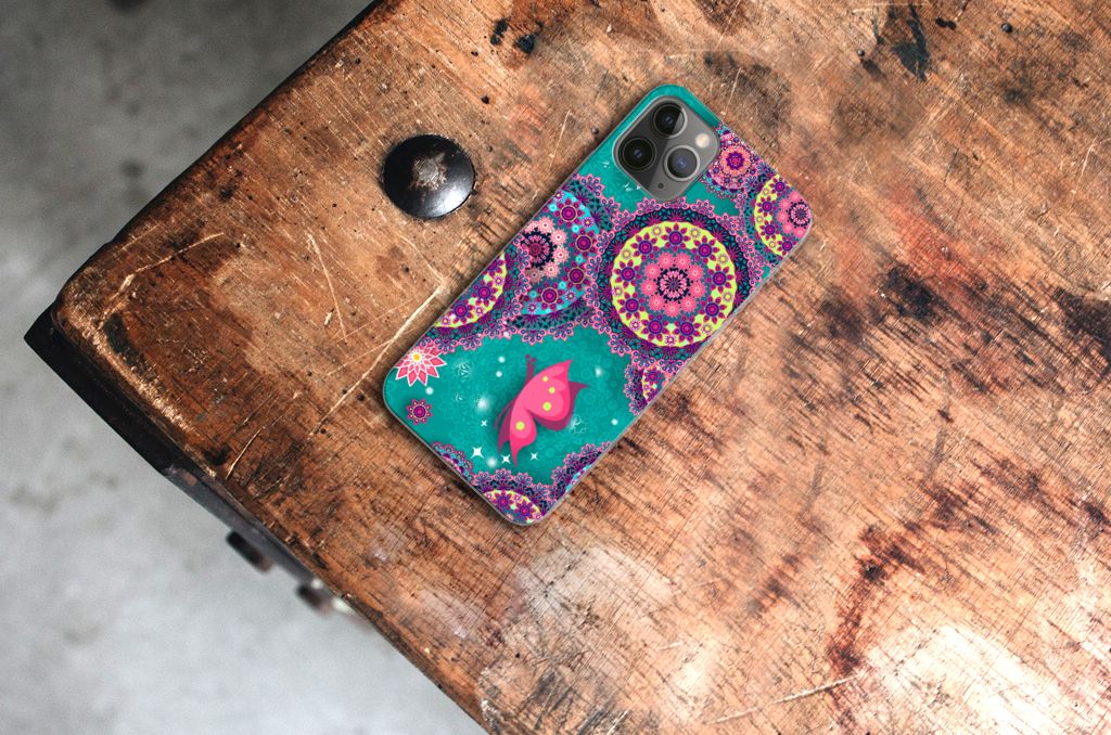 Deze opvallende Apple iPhone 11 Pro Hoesje maken met Cirkels en Vlinders is een ware eyecatcher. De meeste vlinders hebben een onopvallende vleugelkleur en dat kun je van de soort op dit hoesje ook zeker wel zeggen. Wij kunnen deze opvallende vlinders en cirkels op een zeer handige tpu case zetten. Deze hoesjes zijn gewild omwille hun flexibiliteit. Met onze geavanceerde printer zetten we de print van opvallende vlinders en cirkels op de achterkant van het hoesje. De case met vlinders en cirkels blijft aan de zijkanten doorzichtig, zodat je maximaal het design van je smartphone behoudt. Verder is je telefoon natuurlijk goed beschermd met deze tpu case met print van blauwe vlinders. De bovenkant wordt bedrukt, de zijkanten niet. Met een screenprotector bescherm je ook het scherm maximaal.