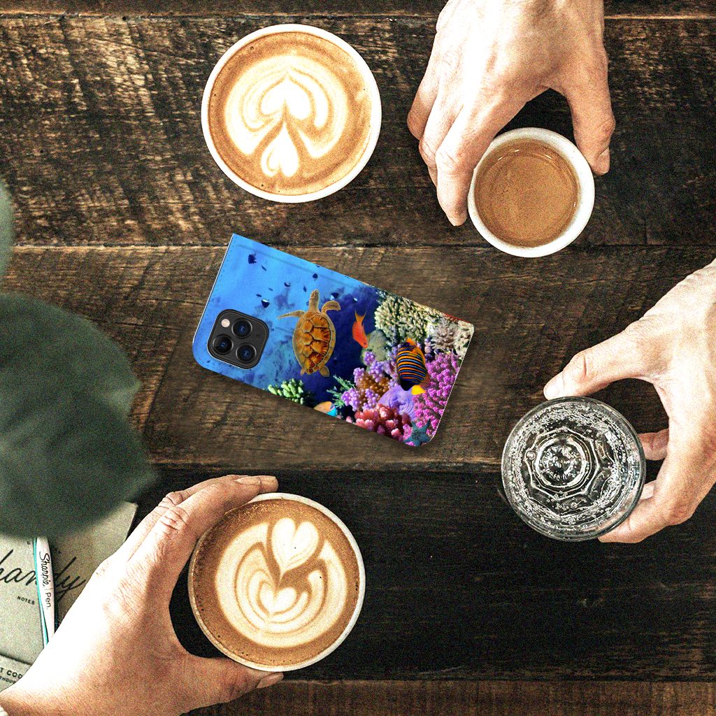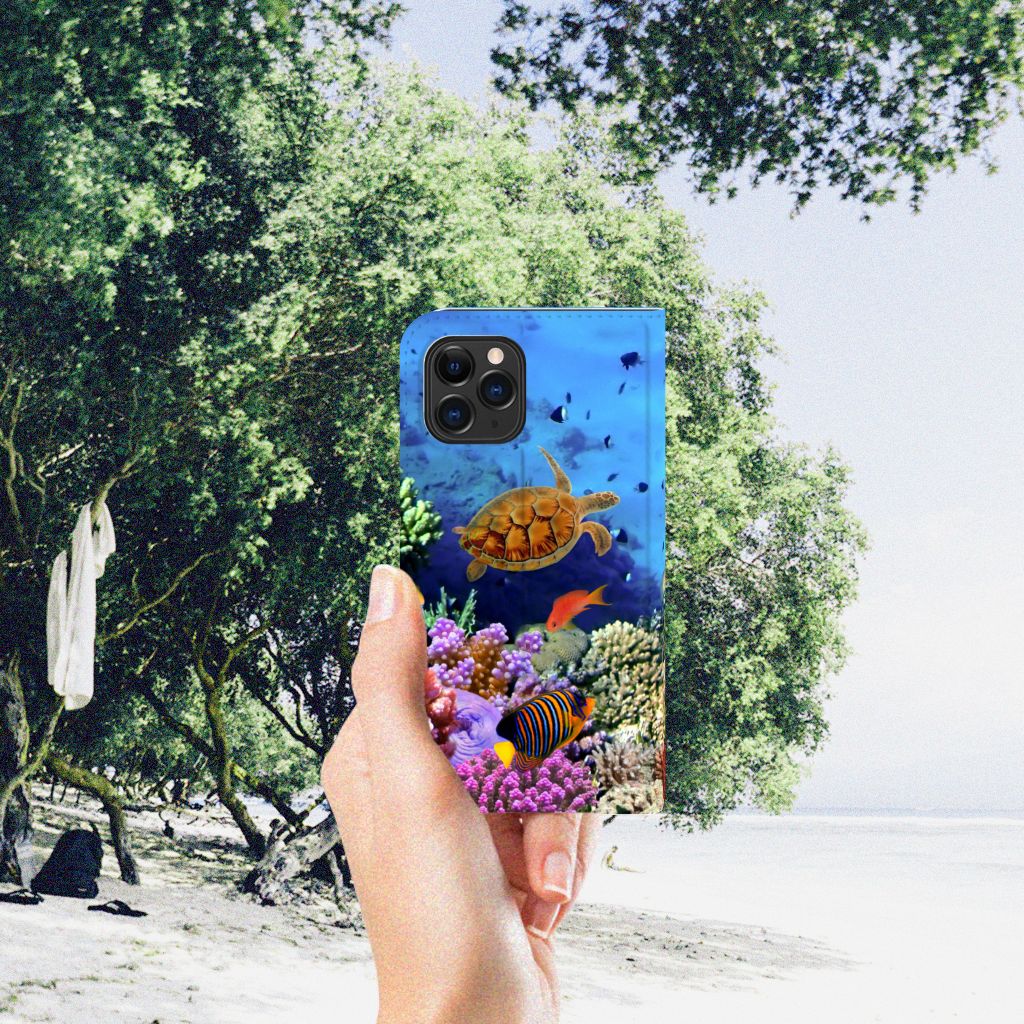 Dit kleurrijke hoesje met tropische Vissen is een ware eyecatcher. Als je aan het duiken bent en je treft een school aan met dit soort opvallende vissen, dan heb je een geweldige ervaring. Maar je hoeft er eigenlijk niet per se het water voor in te duiken. Want wij hebben een schitterende verzameling vissen op dit design hoesje gezet. Met onze zeer geavanceerde printer zetten we de afbeelding van vissen op alle zijden van de Apple iPhone 11 Pro Hoesje maken. De case heeft aan de binnenkant een vakje waarin je jouw creditcard of ander pasje kwijt kunt. Ga je een dagje vissen, dan hoef je de portemonnee dus ook niet op zak te hebben. Verder is je telefoon natuurlijk maximaal beschermd met deze stand case met print van tropische vissen. De houder aan de binnenzijde van het design hoesje met vissen print is van TPU.