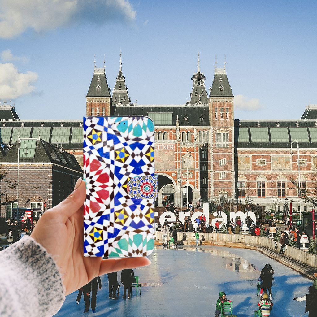 Aan design hoesjes met kunstvormen geen gebrek in onze uitgebreide collectie. Wat dacht je van dit design hoesje met Mozaïek . Dit is een kunstvorm waarbij een grote afbeelding wordt gemaakt uit een groot aantal kleine gekleurde steentjes (tesserae), die in een vloer of wand worden gemetseld. Deze gekleurde steentjes zie je terug op dit boekhoesje met design van mozaïek. Een boekhoesje is zo’n beetje de veiligste case die er bestaat. Een Apple iPhone 11 Pro Max Bookcase met print zorgt voor een volledige bescherming van je smartphone en wordt aan alle zijden bedrukt met mozaïek. Een deel van de foto’s staat ook op het lipje aan de buitenzijde. Verder is de houder aan de binnenzijde van TPU. De Grieken en Romeinen beheersten de kunst al. Op diverse plaatsen in Europa zijn mozaïeken teruggevonden die tot op de dag van vandaag goed bewaard zijn gebleven. Met een hoesje met mozaïek blijft jouw telefoon in tact. Je pasjes en briefgeld kun je in de vakjes aan de binnenzijde stoppen