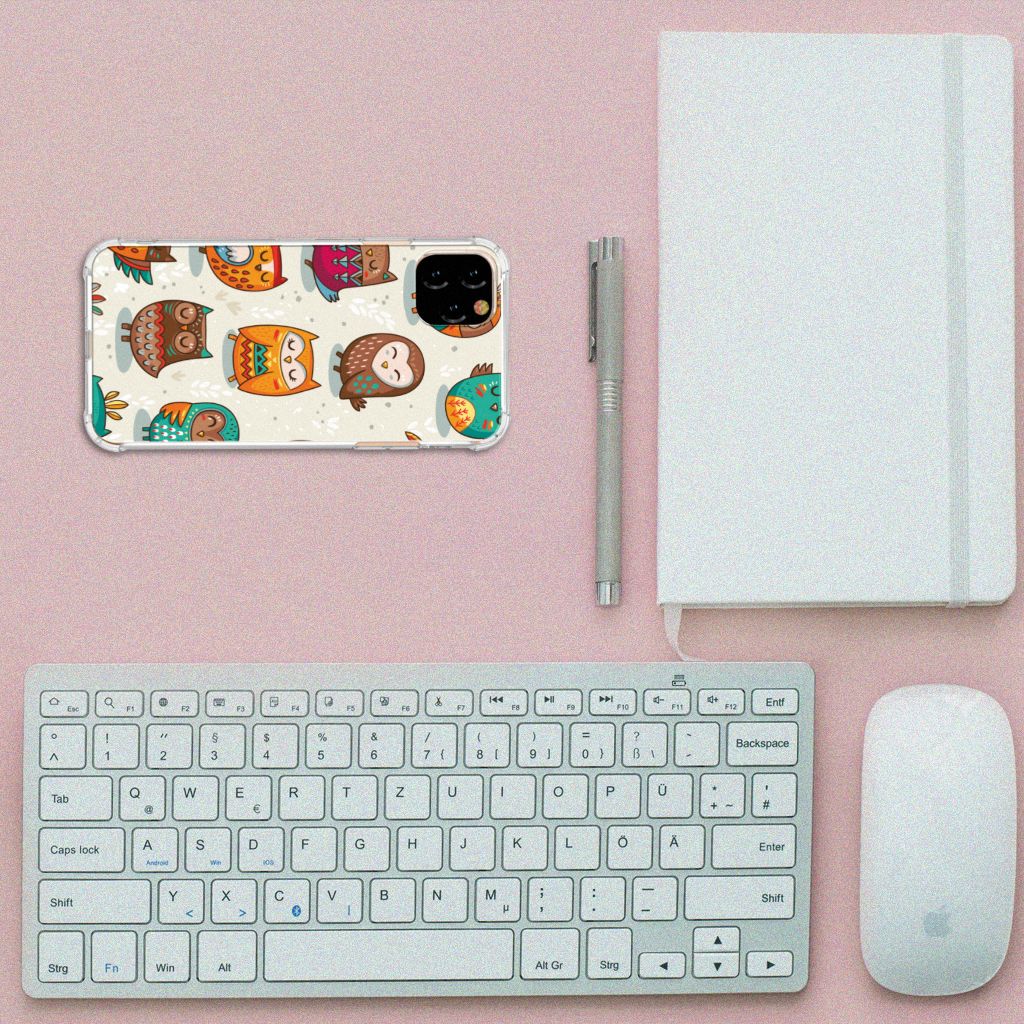 Ben je op zoek naar een uniek telefoonhoesje voor je Apple iPhone 11 Pro Max? Dan ben je bij B2C Telecom aan het juiste adres! Speciaal voor jou hebben we dit prachtige Vrolijke Uilen design in onze collectie hoesjes opgenomen. Het design wordt bedrukt op een Case Anti-shock en is gemaakt van flexibel rubber. Het hoesje is perfect voor de actieve smartphonegebruiker door de opstaande randen/hoeken. Denk aan mensen die veel sporten, reizen of wandelen en net iets meer zekerheid willen als het op hun geliefde telefoon aankomt. Het design wordt alleen aan de bovenkant van het hoesje bedrukt en de randen blijven transparant. Aan de zijkanten zijn uitsparingen gemaakt waardoor je met gemak alle knoppen en poorten kunt bedienen. Wij adviseren om dit hoesje in combinatie met een screenprotector te gebruiken voor een langere levensduur van je telefoon. Wil je dit hoesje nog iets extra's geven? Voeg dan gratis je naam of een quote toe! Is dit design hoesje toch niet helemaal wat je zocht? Ontwerp dan zelf een hoesje in ons ontwerpprogramma.