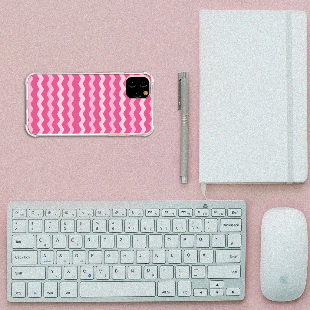 Ben je op zoek naar een uniek telefoonhoesje voor je Apple iPhone 11 Pro Max? Dan ben je bij B2C Telecom aan het juiste adres! Speciaal voor jou hebben we dit prachtige Waves Pink design in onze collectie hoesjes opgenomen. Het design wordt bedrukt op een Doorzichtige Silicone Hoesje en is gemaakt van flexibel rubber. Het hoesje is perfect voor de actieve smartphonegebruiker door de opstaande randen/hoeken. Denk aan mensen die veel sporten, reizen of wandelen en net iets meer zekerheid willen als het op hun geliefde telefoon aankomt. Het design wordt alleen aan de bovenkant van het hoesje bedrukt en de randen blijven transparant. Aan de zijkanten zijn uitsparingen gemaakt waardoor je met gemak alle knoppen en poorten kunt bedienen. Wij adviseren om dit hoesje in combinatie met een screenprotector te gebruiken voor een langere levensduur van je telefoon. Wil je dit hoesje nog iets extra's geven? Voeg dan gratis je naam of een quote toe! Is dit design hoesje toch niet helemaal wat je zocht? Ontwerp dan zelf een hoesje in ons ontwerpprogramma.