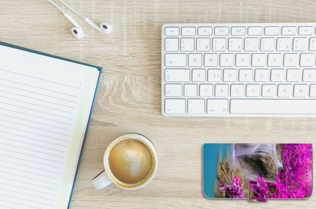 Op deze Apple iPhone 11 Pro Max Flip Cover zie je een kalme waterval en de achtergrond is gevuld met paarse bomen. Samen creëert dit een prachtig en kleurrijk spektakel, iets wat je graag op je Apple iPhone 11 Pro Max hoesje ziet. Wanneer je hiernaar kijkt, word je direct kalm. Als jij je even boos of verdrietig voelt, hoef je alleen maar naar jouw boekhoesje te kijken om weer blij te worden. Ook jouw telefoon zal blij zijn met deze Flip Cover aangezien deze goede bescherming biedt. Als jij je telefoon per ongeluk laat vallen, is er niets aan de hand. Het hoesje zorgt ervoor dat de telefoon intact blijft. Zelfs als hij op het beeldscherm zou vallen, is er dankzij de magnetische sluiting, niets aan de hand.