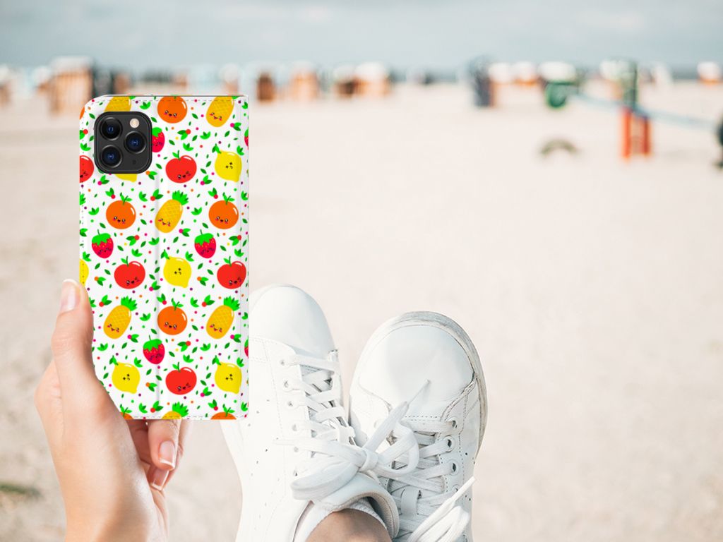 Een fris, fruitig en vrolijk hoesje, deze case met afbeeldingen van aardbeien, ananassen, appels, sinaasappels en citroenen. Minstens twee stuks fruit per dag wordt aanbevolen als dagelijkse hoeveelheid voor de mens. Dit verkleint de kans op allerlei ziekten. Dus met het aantal stukken fruit op de Apple iPhone 11 Pro Max Flip Style Cover zou je wel een maandje zoet moeten zijn. Met het hoesje zelf kun je je hele leven doen, dit is namelijk niet stuk te krijgen. Dit komt door het sterke en flexibele materiaal waarvan het gemaakt is. De vrolijk stemmende case het desing Fruits maakt jouw telefoon dus zeer duurzaam. Zorg ervoor dat jouw smartphone gezond blijft en kies voor dit hoesje met frivool fruit. Een stand case met fruit beschermt jouw telefoon aan alle kanten en beschikt over een 1 opbergvakje en een speciale standaard. Het hoesje met fruit wordt afgesloten met een magneet aan de binnenzijde. De houder aan de binnenzijde is van TPU.