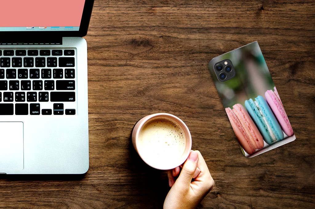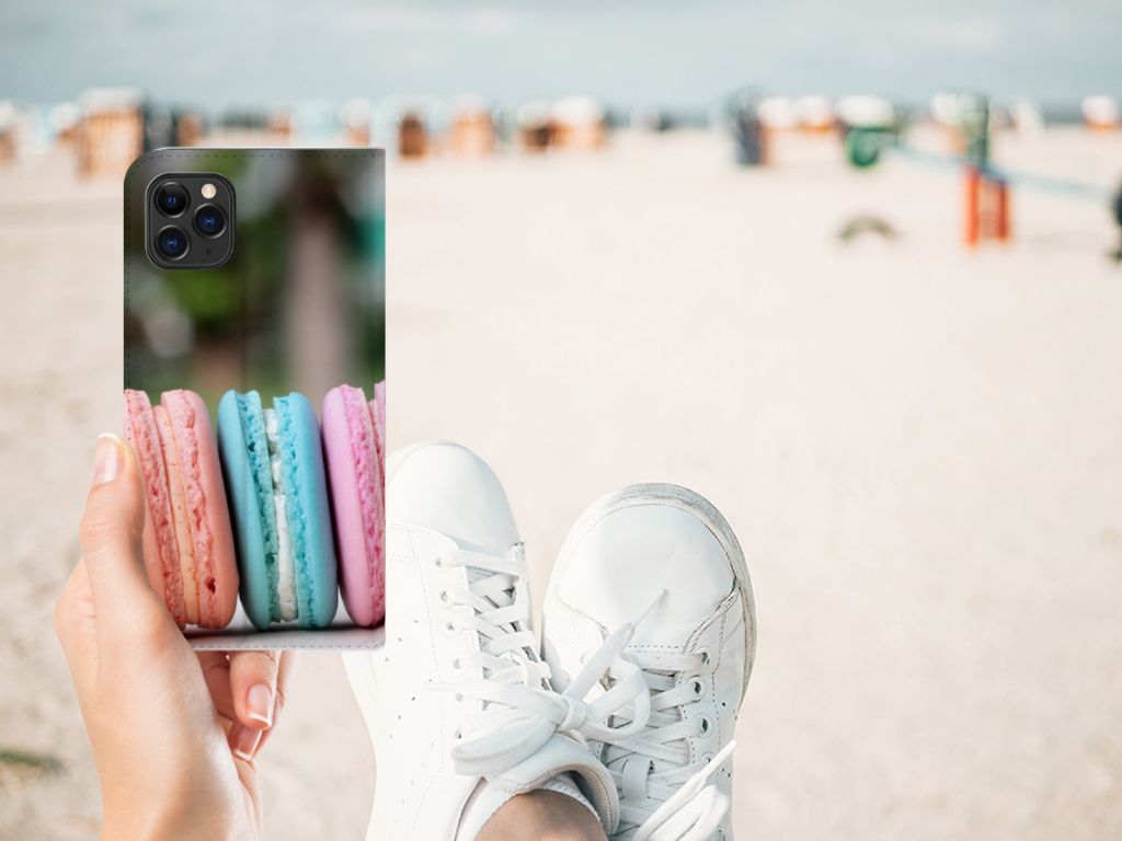 Dit stand hoesje met macarons is een zeer opvallende bescherming voor jouw smartphone. Macarons zijn Franse koekjes: kleine, rond en luchtig. Ze zijn aan elkaar geplakt met een zachte vulling. Ze worden in veel verschillende smaken gemaakt, herkenbaar aan de verschillende kleuren zoals chocolade (donkerbruin), mokka (middenbruin), kersen (rood), pistache (groen), aardbei (roze), framboos (karmijn), citroen (geel) en kokos (roomwit). Deze kleuren kun je natuurlijk ook zien op dit fraaie design hoesje met macarons. Heb je altijd al een Apple iPhone 11 Pro Max Flip Style Cover willen hebben met macarons? Grijp dan nu je kans. Deze case heeft zeer veel goede eigenschappen, zoals 1 opbergvakje en een magnetische sluiting aan de binnenkant. Dit design hoesje met macarons wordt aan alle zijden bedrukt. De houder aan de binnenkant van het hoesje is van TPU. De case heeft ook een handige standaard.