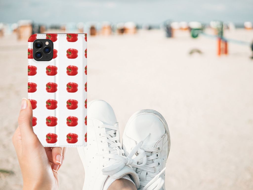 Er zit pit in jouw Apple iPhone 11 Pro Max Flip Style Cover dankzij dit design met rode paprika’s. Paprika’s zijn er in allerlei kleuren en vormen en ze hebben gemeen dat ze heel erg gezond zijn. De rode paprika’s op deze case staan op een grijs met witte geblokte achtergrond en vormen een opvallende verschijning. Heb jij ooit iemand in je nabije omgeving rond zien lopen met een design hoesje met rode paprika’s? Waarschijnlijk niet. Dit stand hoesje met rode paprika’s beschermt jouw telefoon aan alle zijden en beschikt over een opbergvakje voor een pasje of briefgeld. De case sluit perfect af met de magneet aan de binnenzijde. Zeker weten dat je met dit hoesje met rode paprika’s een smartphone accessoire te pakken hebt waarmee je jezelf in de schijnwerpers zet. De houder aan de binnenzijde van de stand case met rode paprika’s is van TPU. Als je andere kleuren paprika’s op je hoesje wilt, raden we je aan ons assortiment design hoesjes te bekijken of zelf een hoesje te ontwerpen.