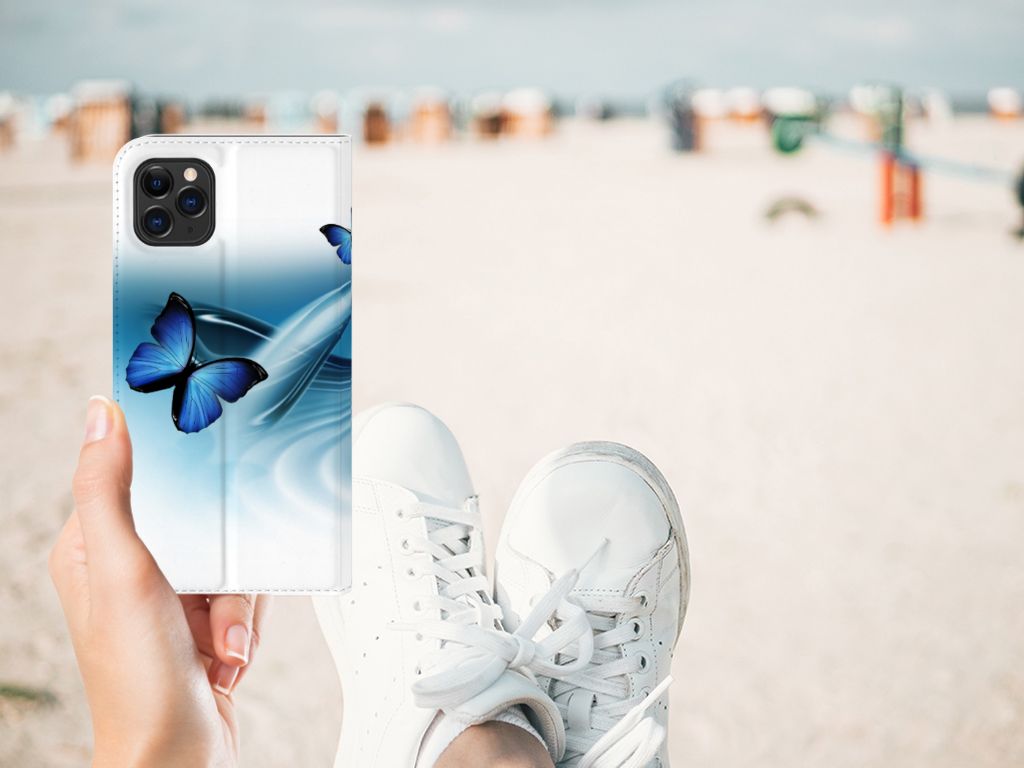 Deze vrolijke Apple iPhone 11 Pro Max Hoesje maken met blauwe vlinders is een ware eyecatcher. De meeste vlinders hebben een onopvallende vleugelkleur, andere soorten hebben juist heldere en felle kleuren. Wij kunnen deze blauwe vlinders op een zeer handige stand case zetten. Deze hoesjes zijn het meest gewild. Met onze geavanceerde printer zetten we de afbeelding van vlinders op alle zijden van het hoesje. De case met vlinders heeft aan de binnenkant een houder waarin je jouw creditcard of ander pasje kwijt kunt. De case heeft bovendien een handige standaard. Verder is je telefoon natuurlijk maximaal beschermd met deze stand case met print van blauwe vlinders. De houder aan de binnenzijde van het design hoesje met vlinder print is van TPU.