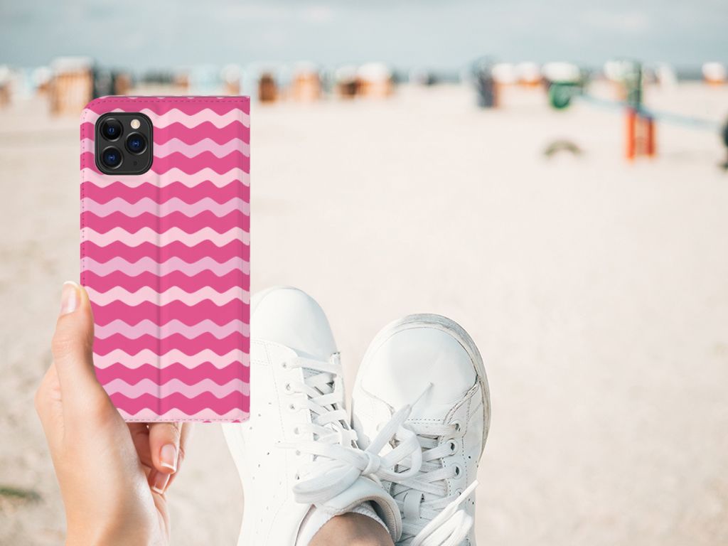 Dit design hoesje met roze golven is speciaal op maat gemaakt voor jouw telefoon. We hebben verschillende kleurstellingen gebruikt in het design, zodat de case er spannend en leuk uitziet. Dit roze hoesje met verschillende soorten golven ziet er opwindend uit. Het Apple iPhone 11 Pro Max Hoesje met Magneet wordt in ons eigen magazijn bedrukt, vandaar dat we de kosten zeer laag kunnen houden. Wij kunnen het duurzame hoesje met Waves Pink zeer snel leveren. Heb jij altijd al een design hoesje met verschillende soorten roze willen hebben? De stand case met roze golven beschermt jouw telefoon aan alle kanten en beschikt over een 1 opbergvakje en een speciale standaard. Het roze hoesje wordt afgesloten met een magneet aan de binnenzijde. De houder aan de binnenzijde van de case in verschillende soorten roze is van het flexibele TPU. Alle zijden van de roze stand case worden bedrukt.
