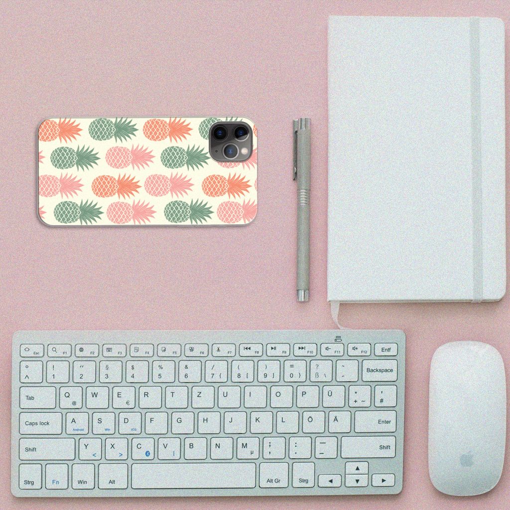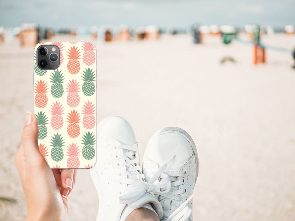 Ananas is een woord uit het Tupi, de taal van de Tupi-indianen, en betekent uitmuntende vrucht. Dit fruit van zeer hoge kwaliteit staat op onze superieure boekhoesjes, stand cases, hard cases en TPU cases. Jij blijft er gezond uitzien als je zo nu en dan een hap neemt van een Ananas , jouw smartphone blijft tip top in orde als je er een leuk telefoonhoesje omheen doet. Een ananas heeft stevig, veerkrachtig vruchtvlees. Een beetje te vergelijken met het TPU in onze hoesjes. TPU is elastisch materiaal, dat zeer buigzaam is. Vandaar dat het zeer schokbestendig is. Het ananas design staat op een staat op een TPU case. Deze Apple iPhone 11 Pro Max Siliconen Case wordt alleen aan de bovenkant bedrukt en is zeer flexibel. De randen van het hoesje blijven transparant.